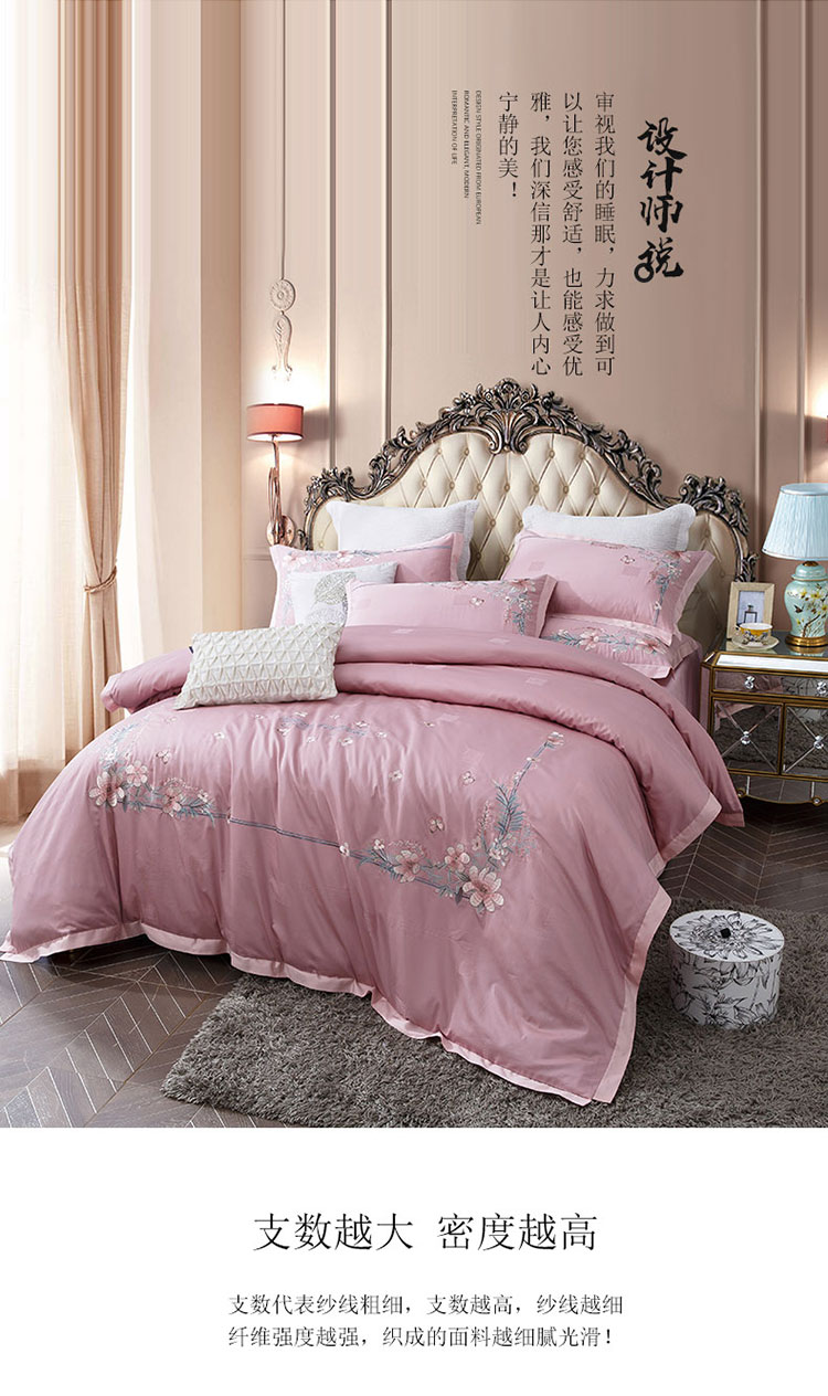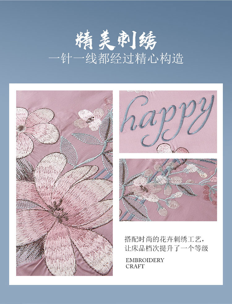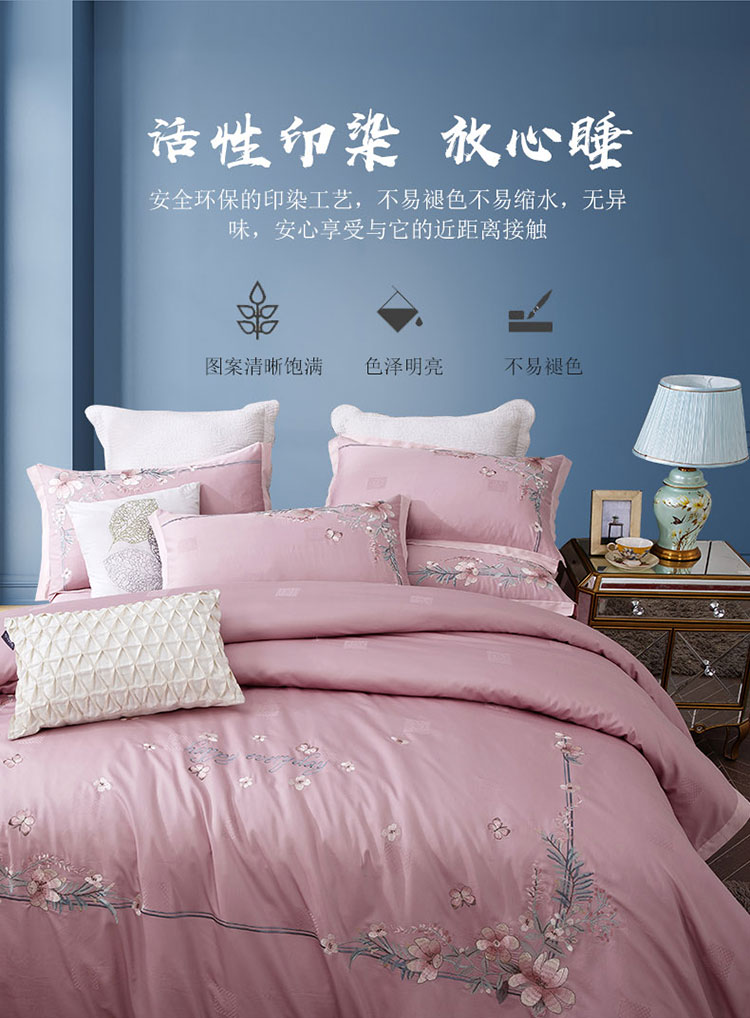 (总)兴美佳家纺 欧式60s贡缎长绒棉刺绣四件套,幽兰古调-蓝,幽兰古调-紫