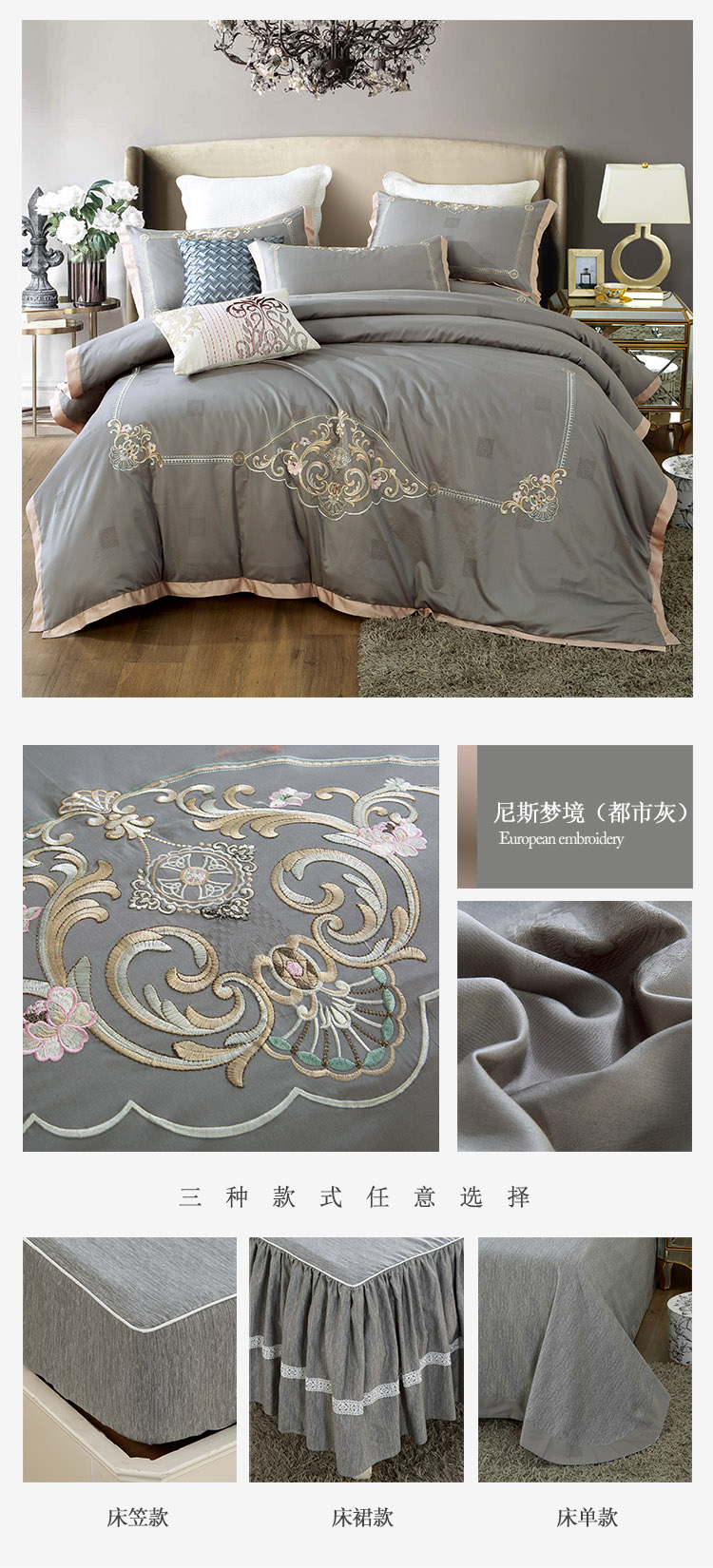商品名称:总兴美佳100S澳棉高端绣花床单床裙床笠四件套花语韶华牡丹莎