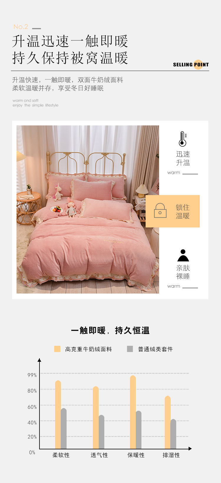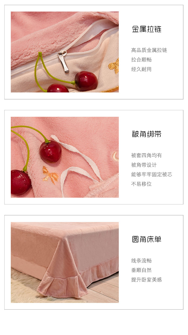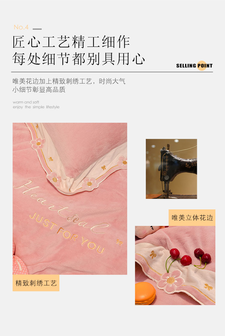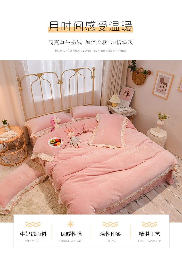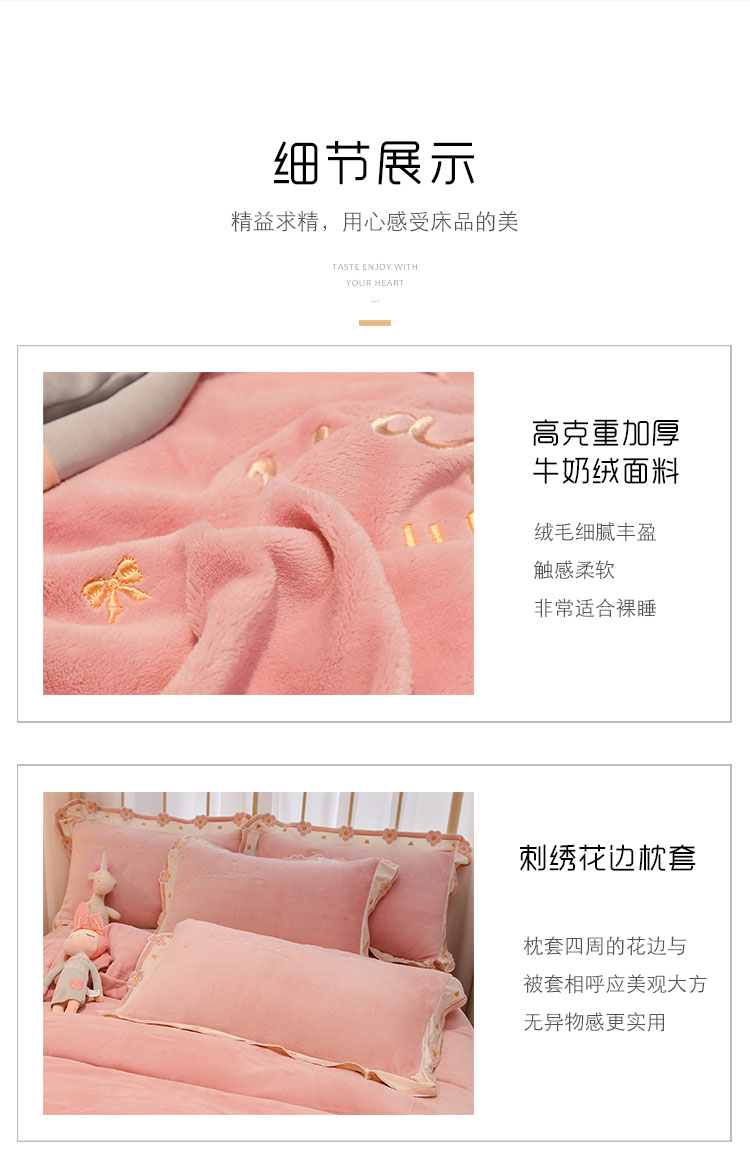 商品名称:安妮 2022新款朵拉牛奶绒刺绣四件套 粉色