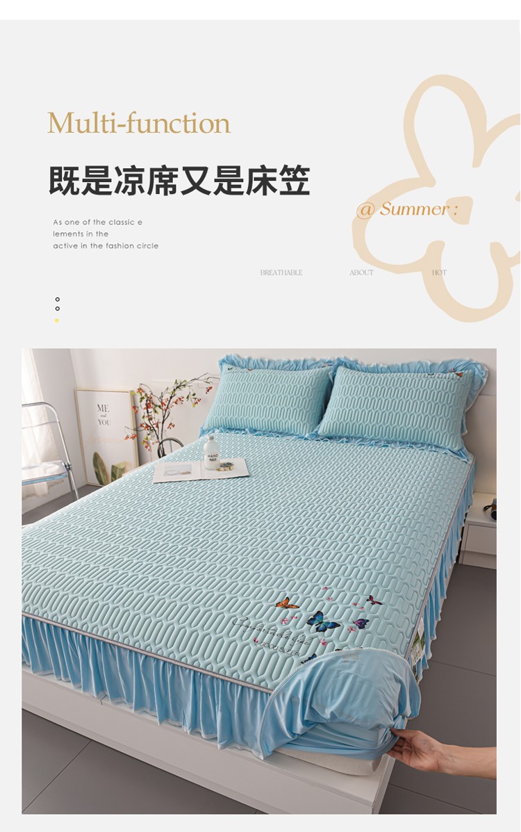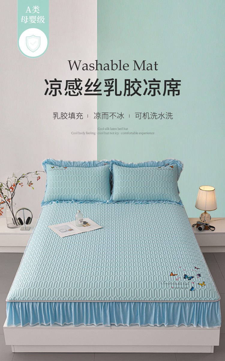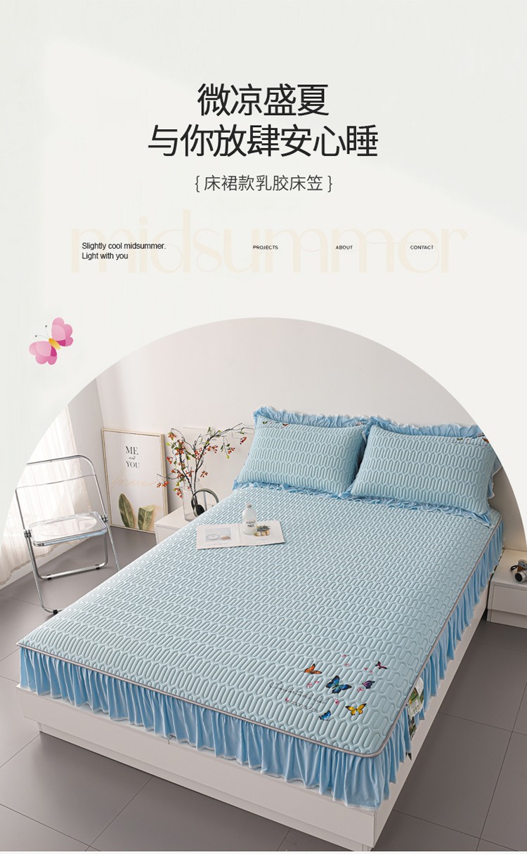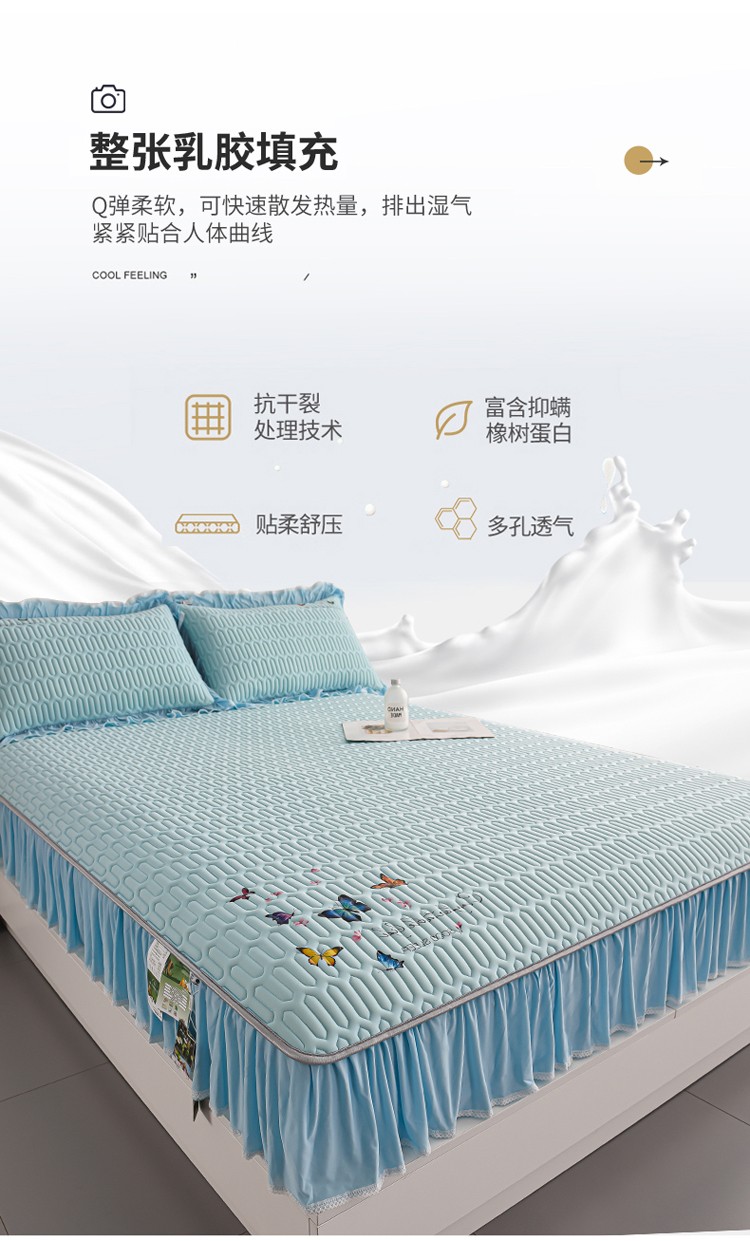 (总)好眠好梦 2023新款A类乳胶床裙凉席-蝶恋花系列,宾利蓝,淡雅米,橘橙黄,暖黄,青绿,天空蓝,烟熏紫,樱花粉,珍珠灰