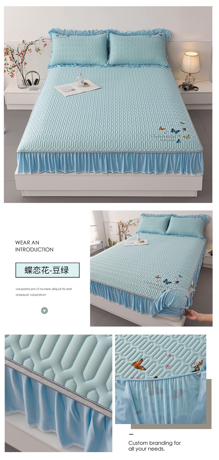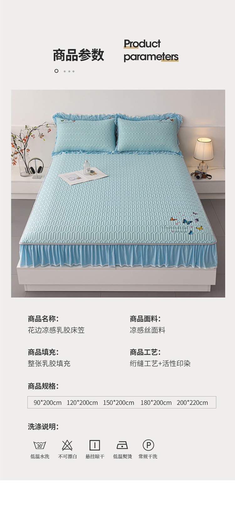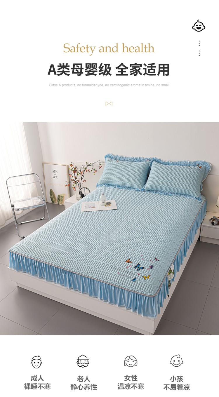(总)好眠好梦 2023新款A类乳胶床裙凉席-蝶恋花系列,宾利蓝,淡雅米,橘橙黄,暖黄,青绿,天空蓝,烟熏紫,樱花粉,珍珠灰