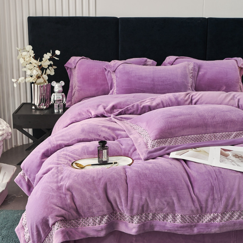 榻尚家居 2023新款公主绒刺绣贴边四件套 气质紫