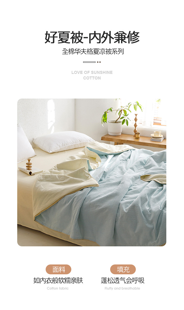 沐棉家居 2024新款全棉华夫格单品夏被 华夫格-兰