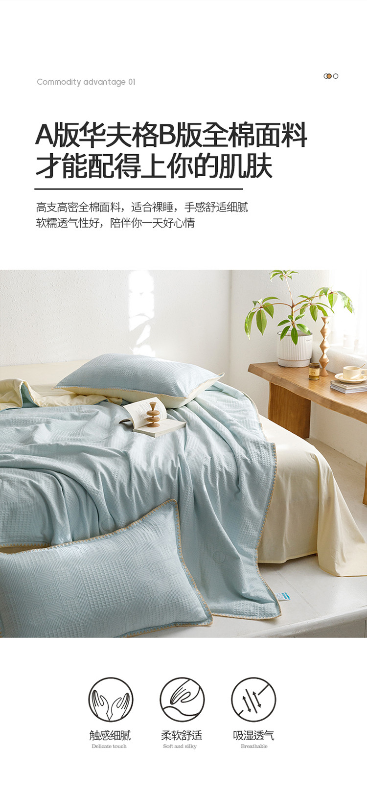 商品名称:沐棉家居 2024新款全棉华夫格单品夏被 华夫格-兰