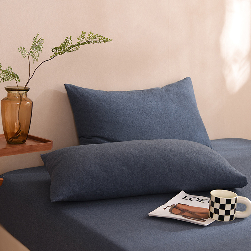 甜之梦家纺 2025新款针织棉拼色单品枕套 海军蓝