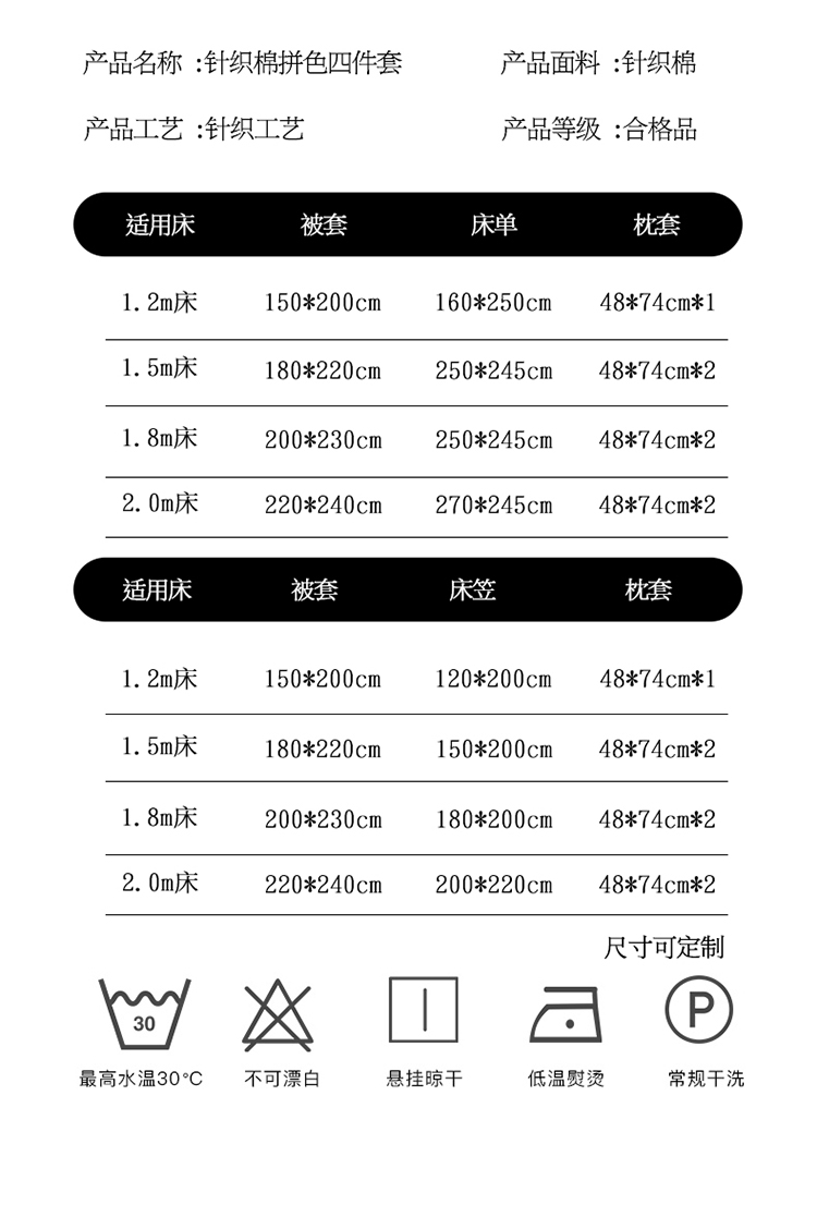 商品名称:(总)甜之梦 2025新款针织棉拼色四件套(任何尺寸都可以定制)