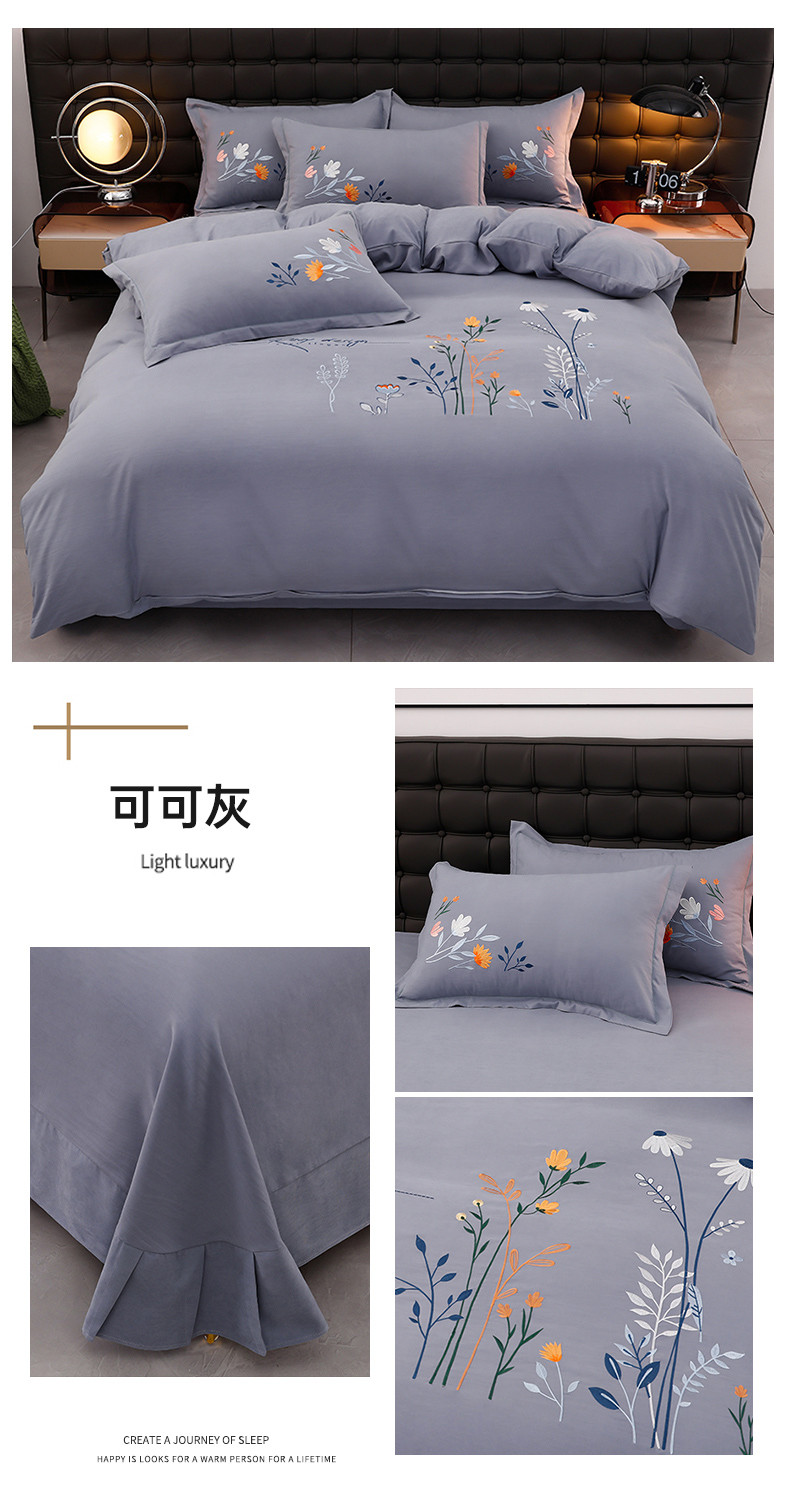 商品名称:润淳家居 2025新款直播爆款云锦棉绣花刺绣四件套 可可 灰