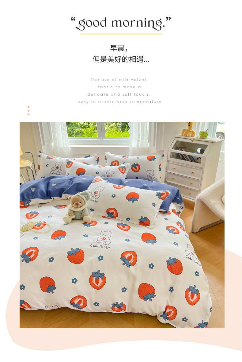 卡斯诺 2025新款植物羊绒磨毛四件套 甜莓告白