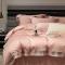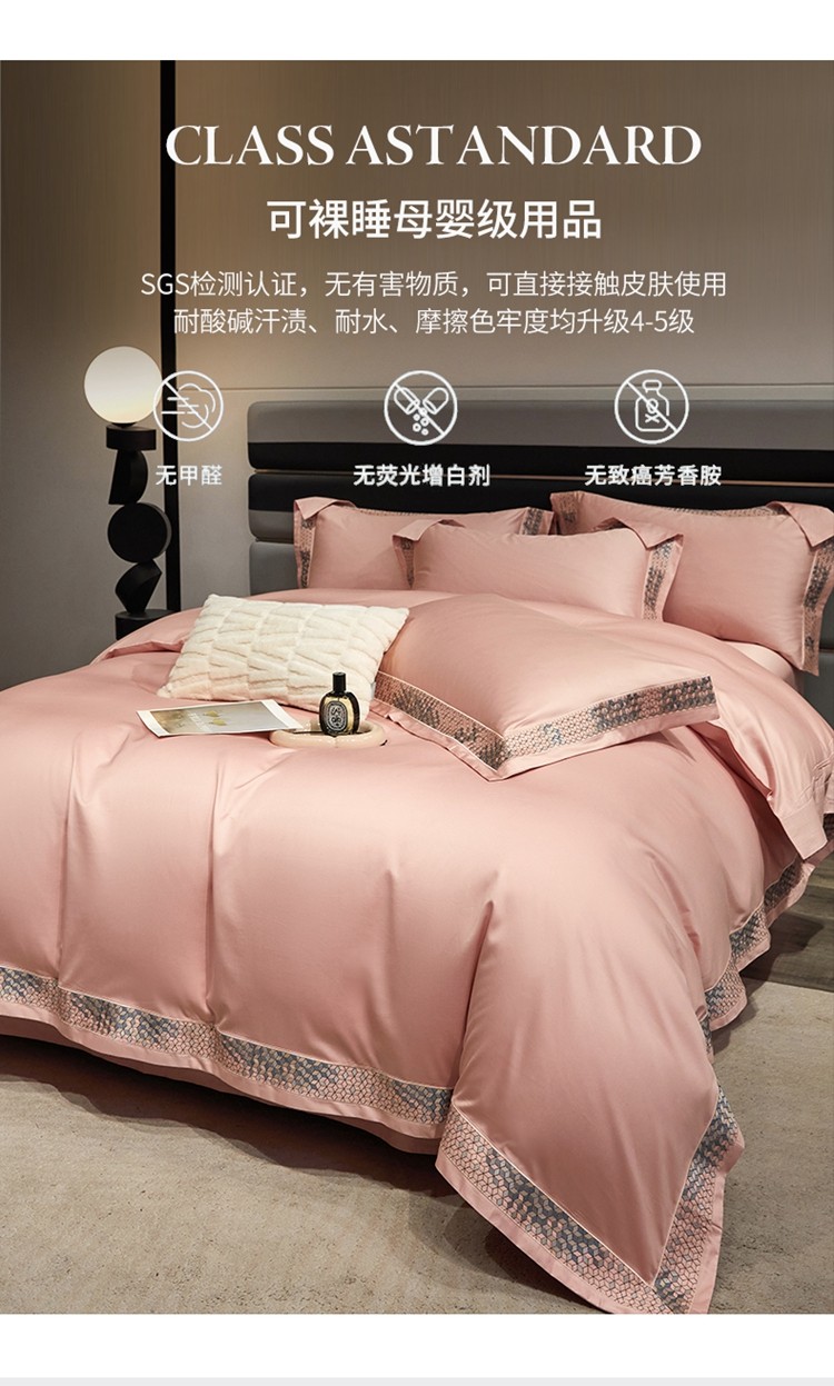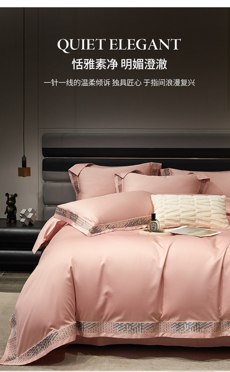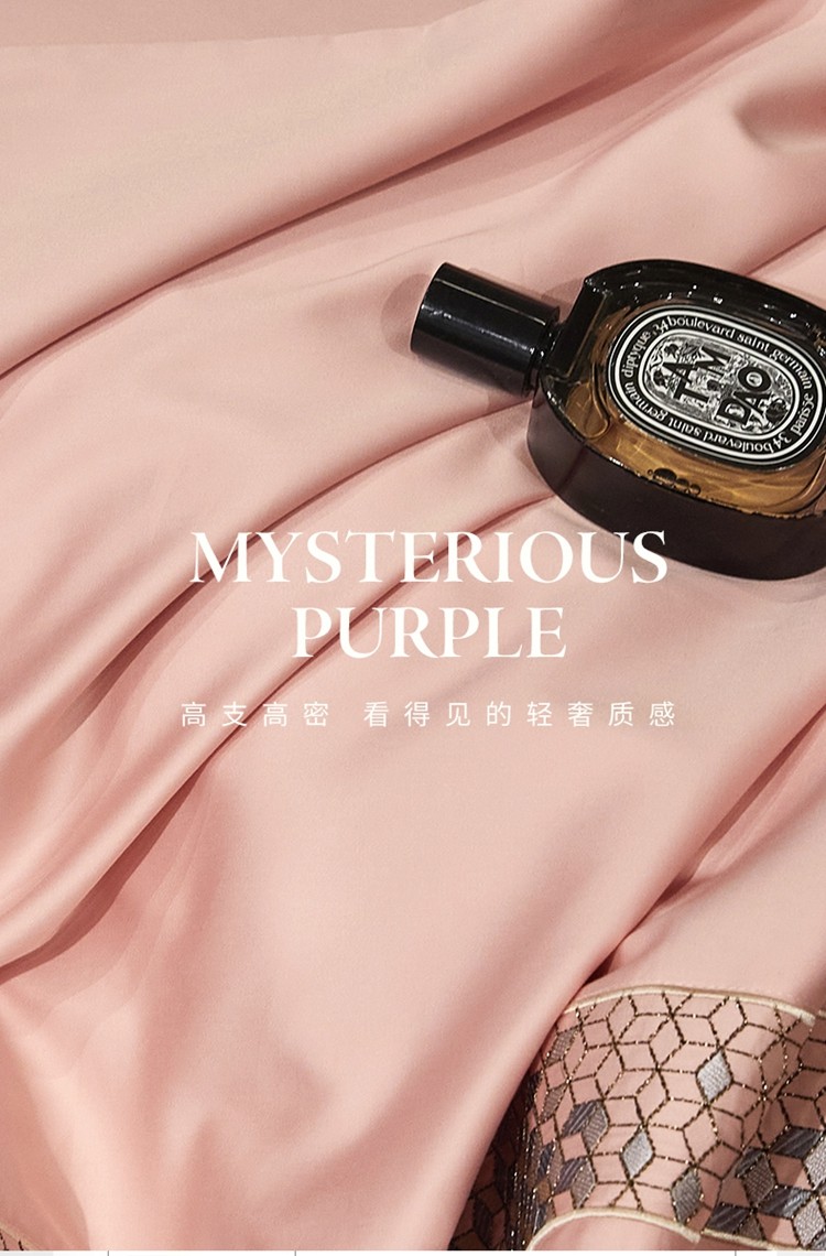 柔觉家纺 天丝刺绣贡缎提花全棉四件套,卡曼时尚-粉紫