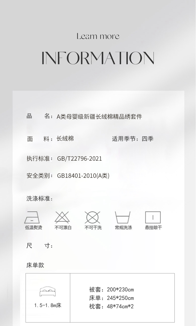 柔觉家纺 天丝刺绣贡缎提花全棉四件套,伊贝尔-本白