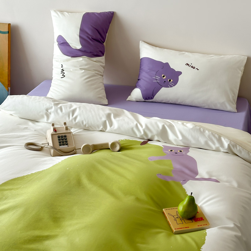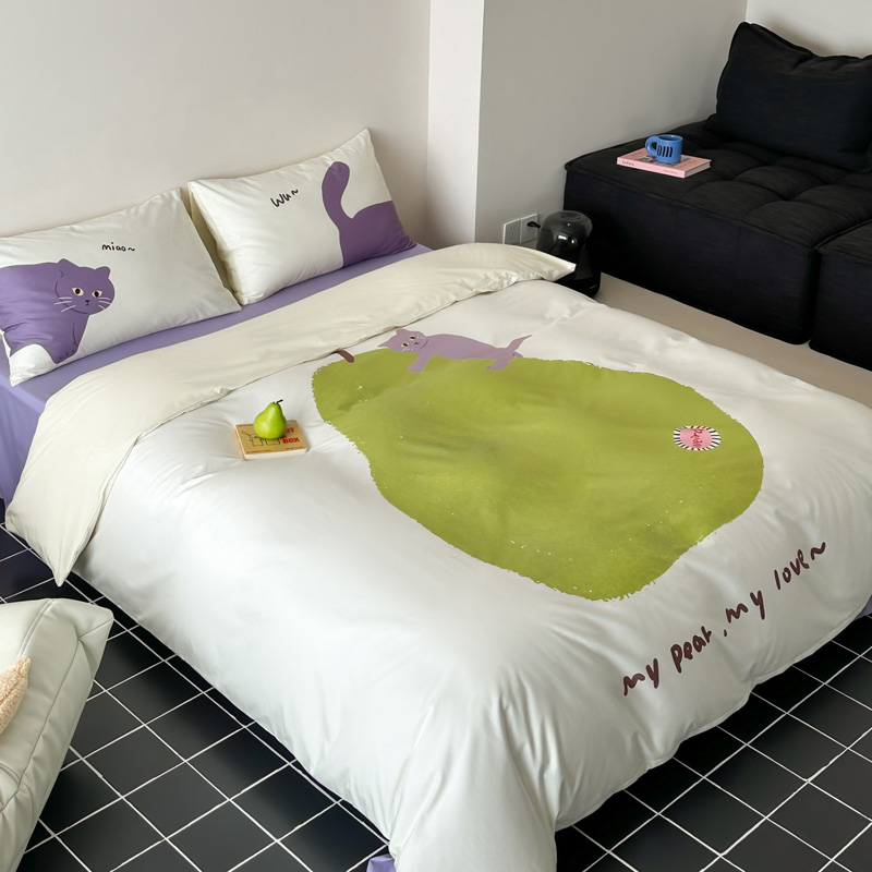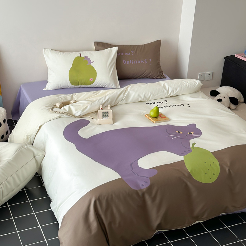 商品名称:艾沁家纺 2024新款40S全棉贡缎数码印花水洗棉四件套 肥梨
