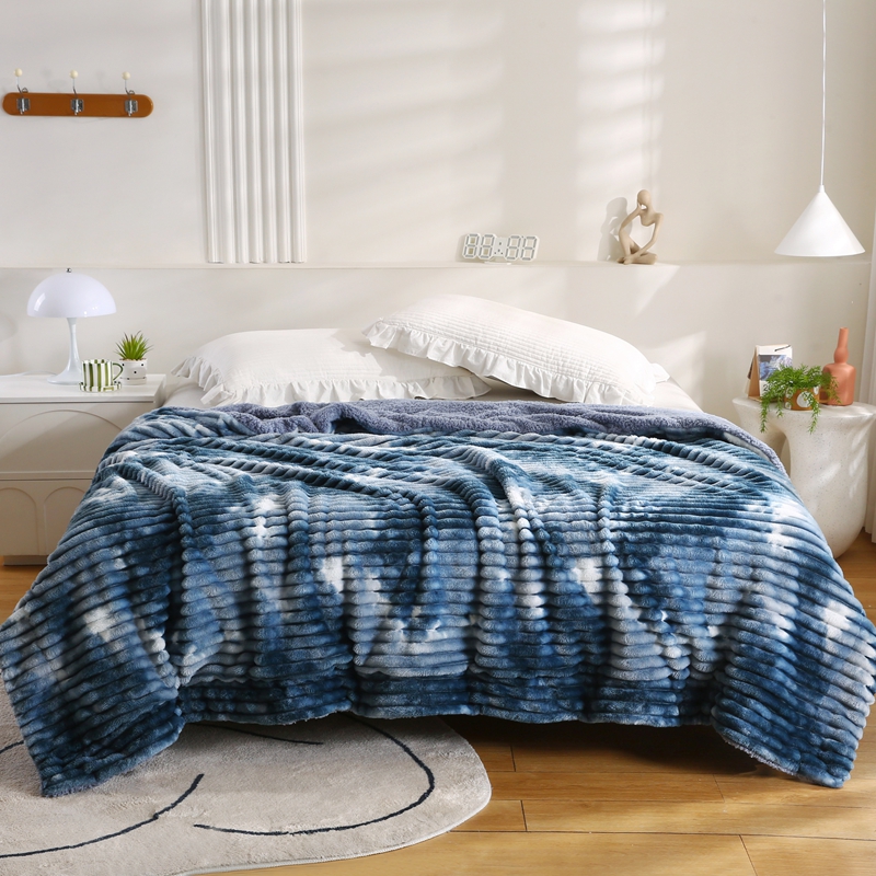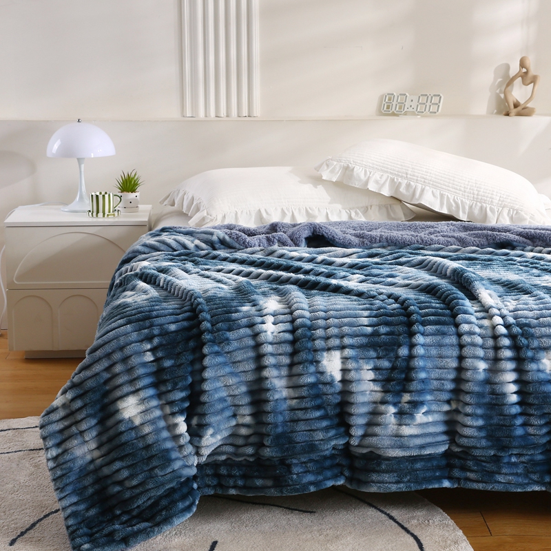 商品名称:巴木赫 2024新款同色印花抽条羊羔绒毛毯 海兰同色羊羔绒