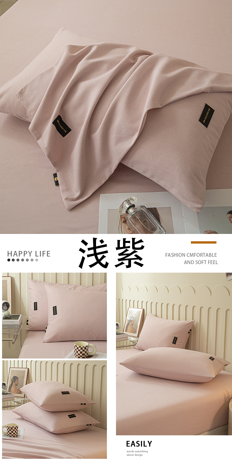 涵宸家纺 2024新款原棉纯色织标磨毛单品及套件--枕套 单枕套-烟紫