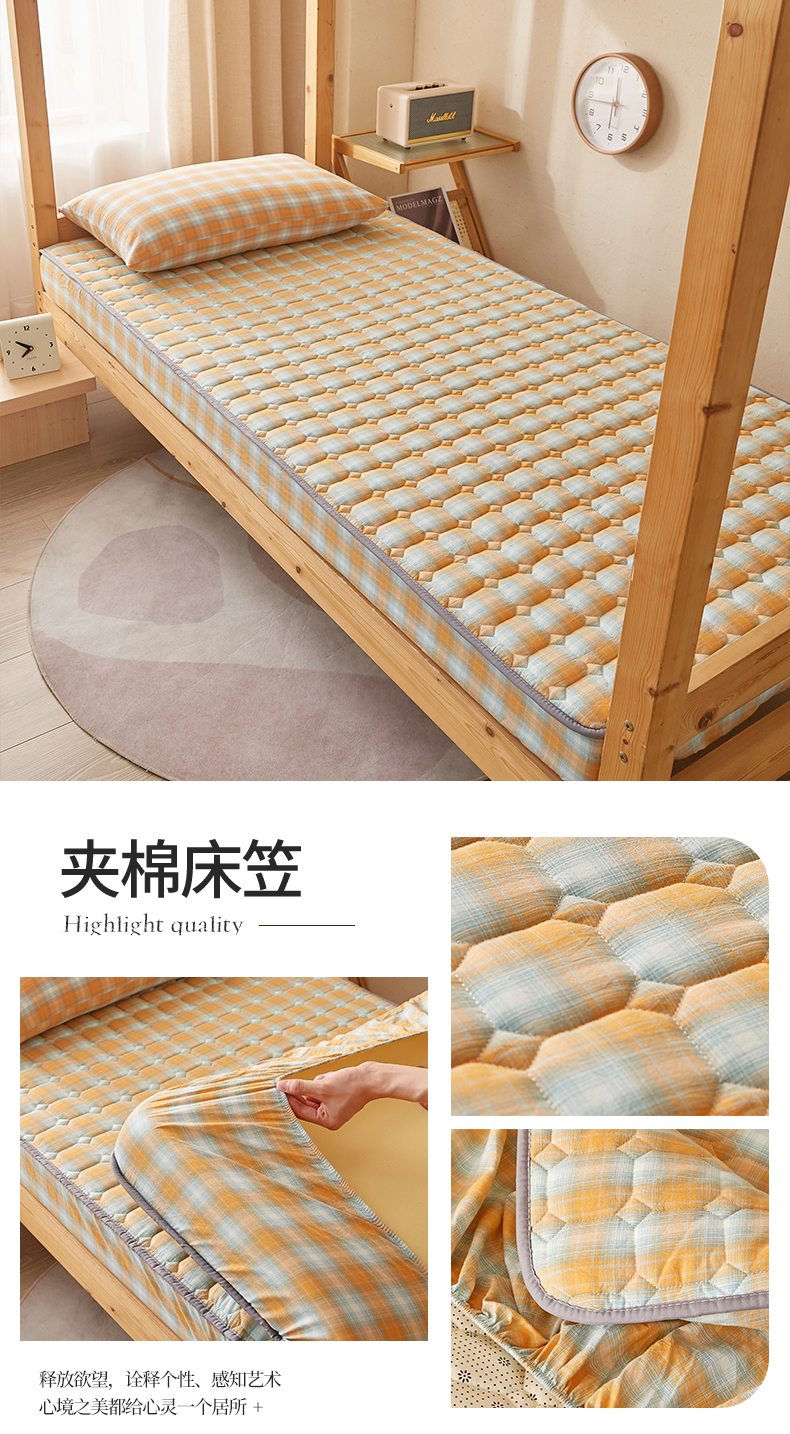 迪乐妮家居 2024新款单人床色织全棉夹棉床笠(无印家居风) 密橘格