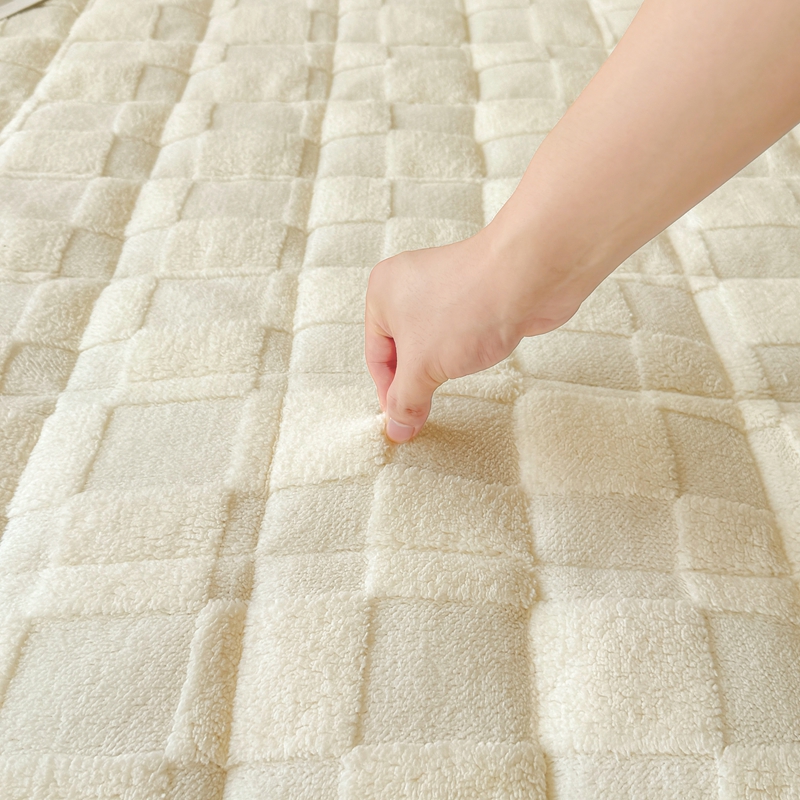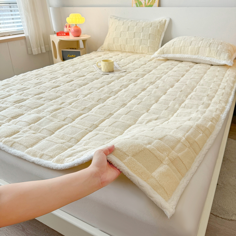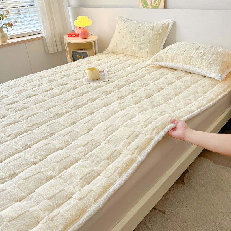商品名称:湘之帛 2024新款高克重塔芙绒床垫床护垫三件套 拼图-奶油白