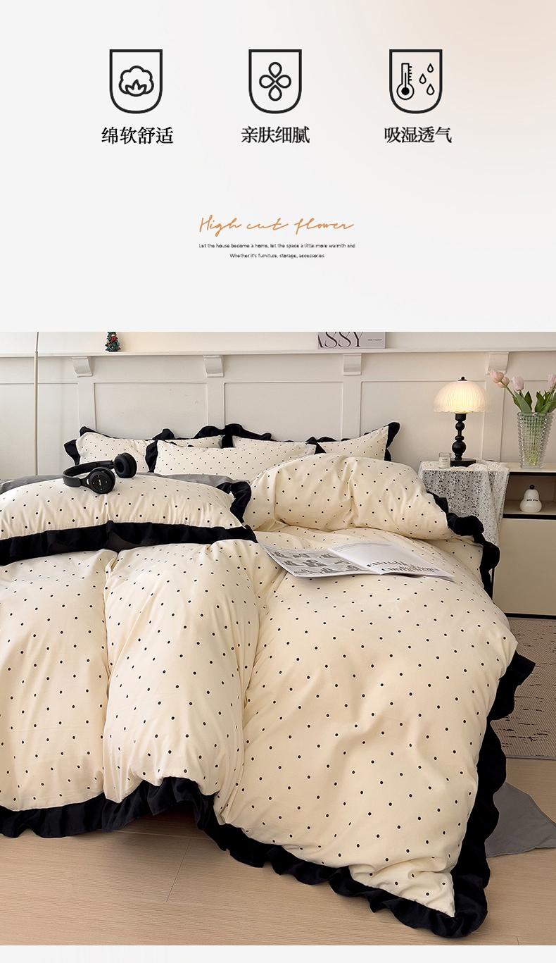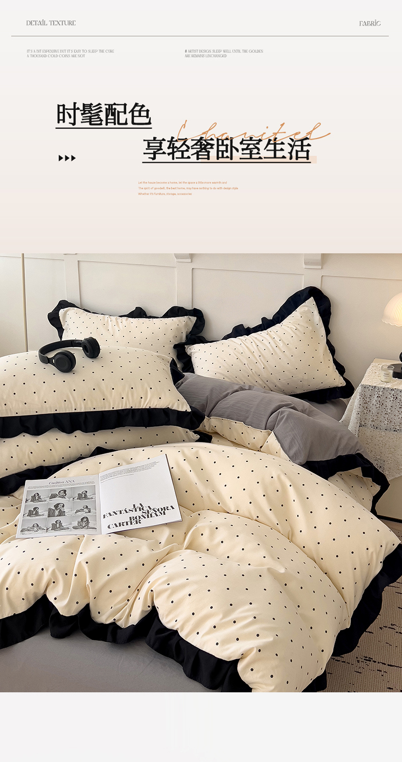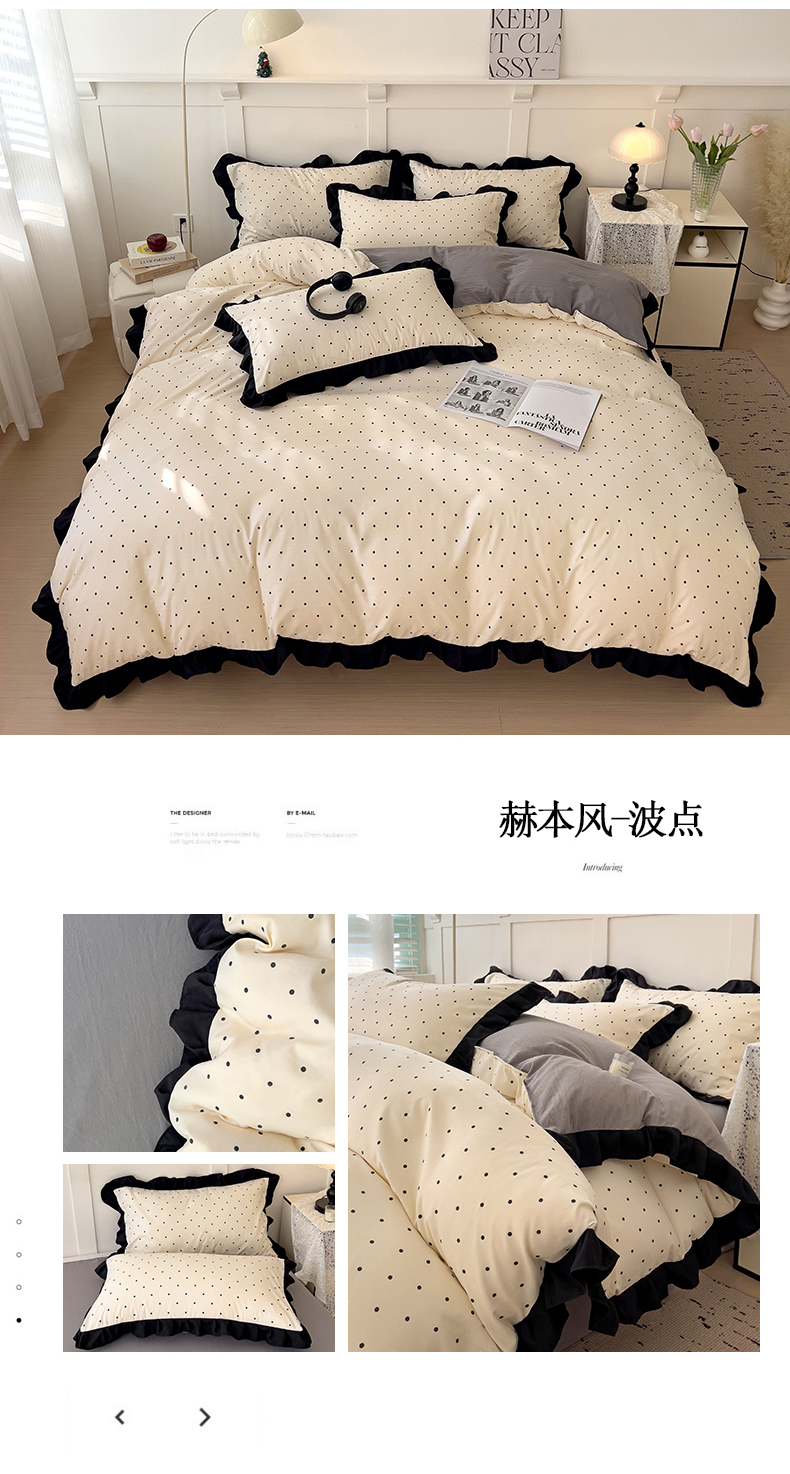 当前位置: 91家纺网 > 商品网购 > 床品套件 > 四件套 > 水洗棉四件套 > 逸林家纺《原希尔顿逸林》 2025新款法式赫本风水洗棉四件套 赫本风-波点