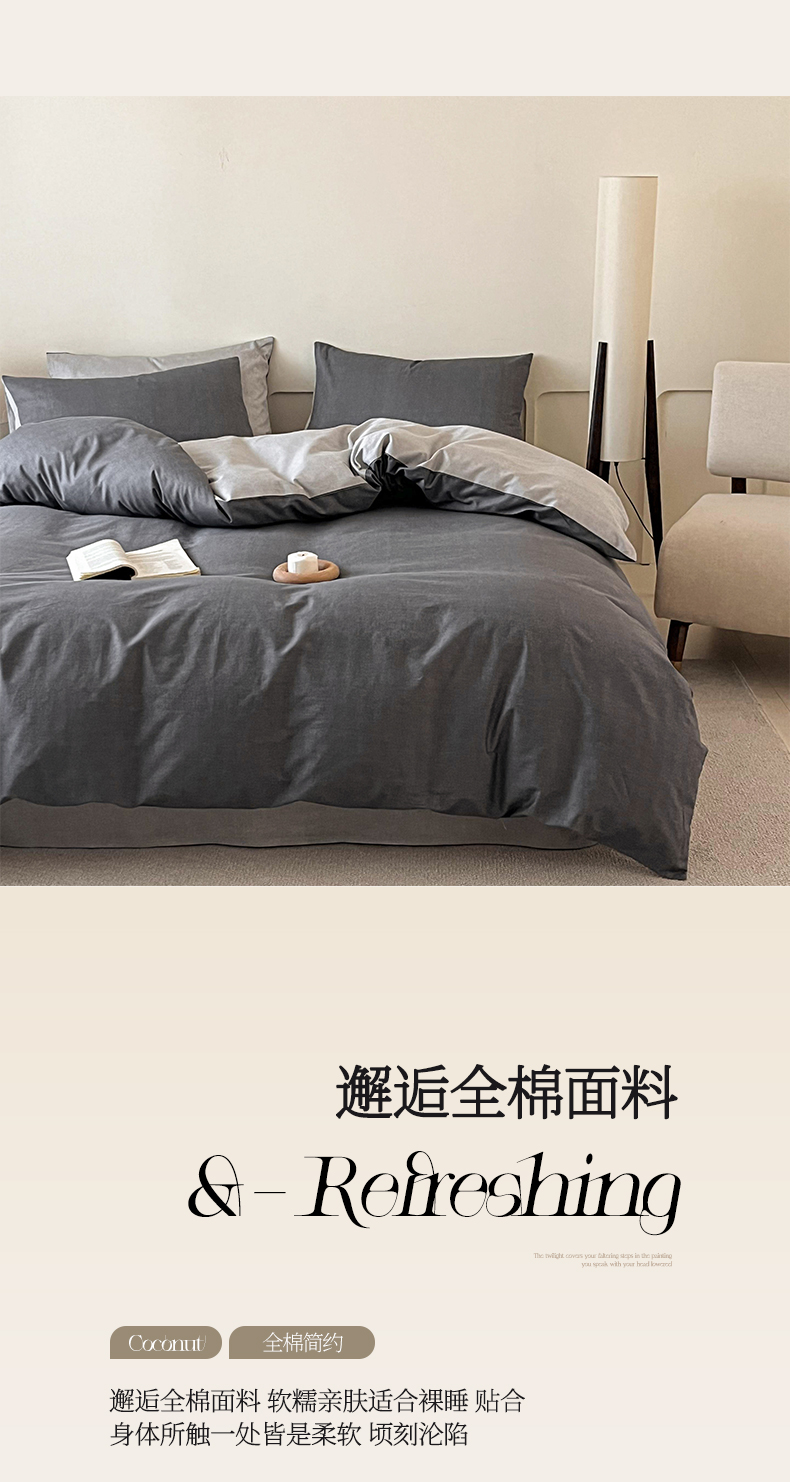 当前位置: 91家纺网 > 商品网购 > 床品套件 > 四件套 > 全棉普通四件套 > 涵宸家纺 2025新款全棉印花良品系列四件套 云纹-深浅灰