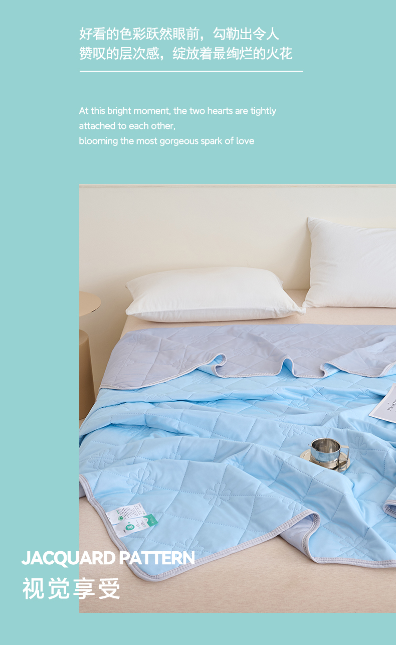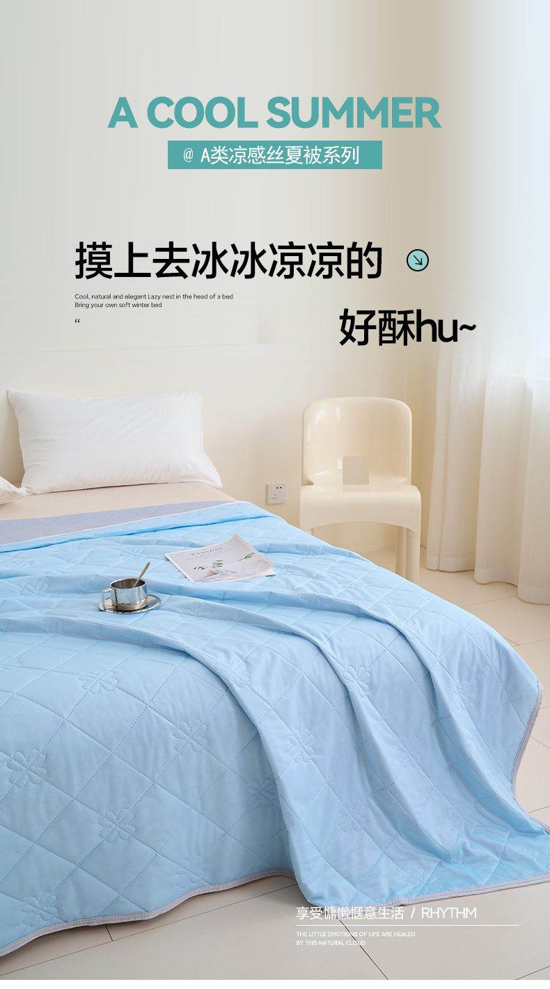 商品名称:畅销被业 2025新款A类凉感丝纯色压花夏被系列直播外贸跨境 天蓝