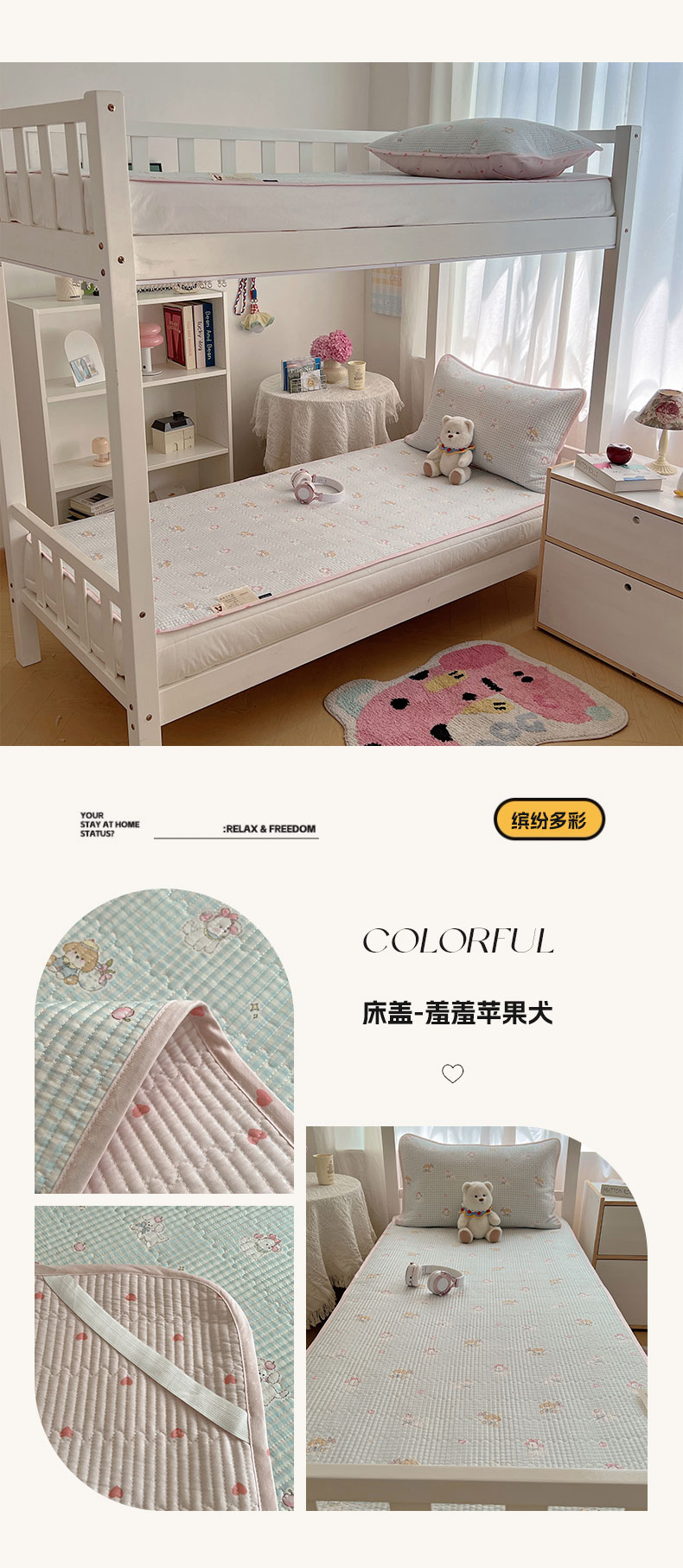 六巷胡同 2025新款INS卡通A类双面全棉绗缝夹棉学生床盖 床盖-星星腊肠狗