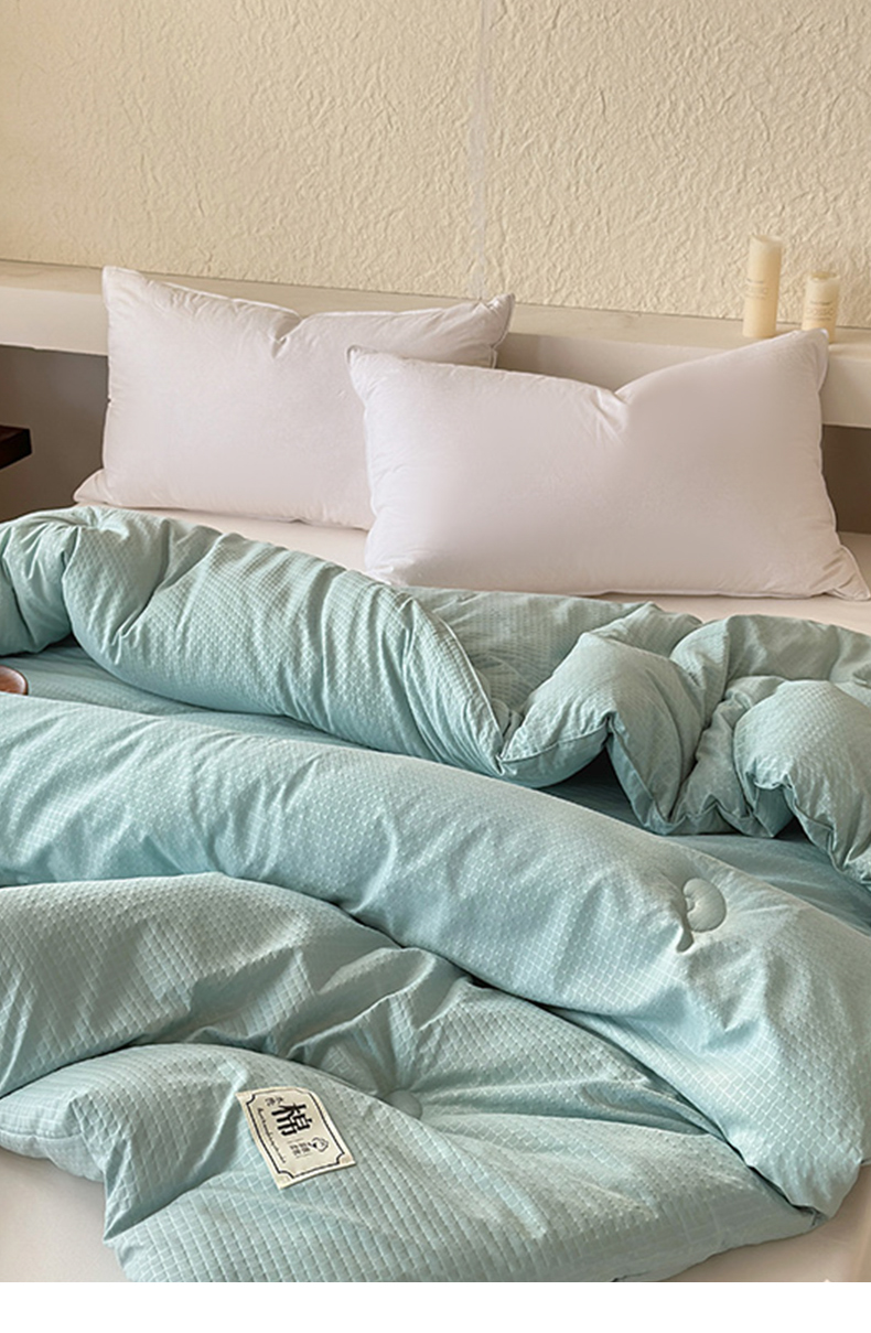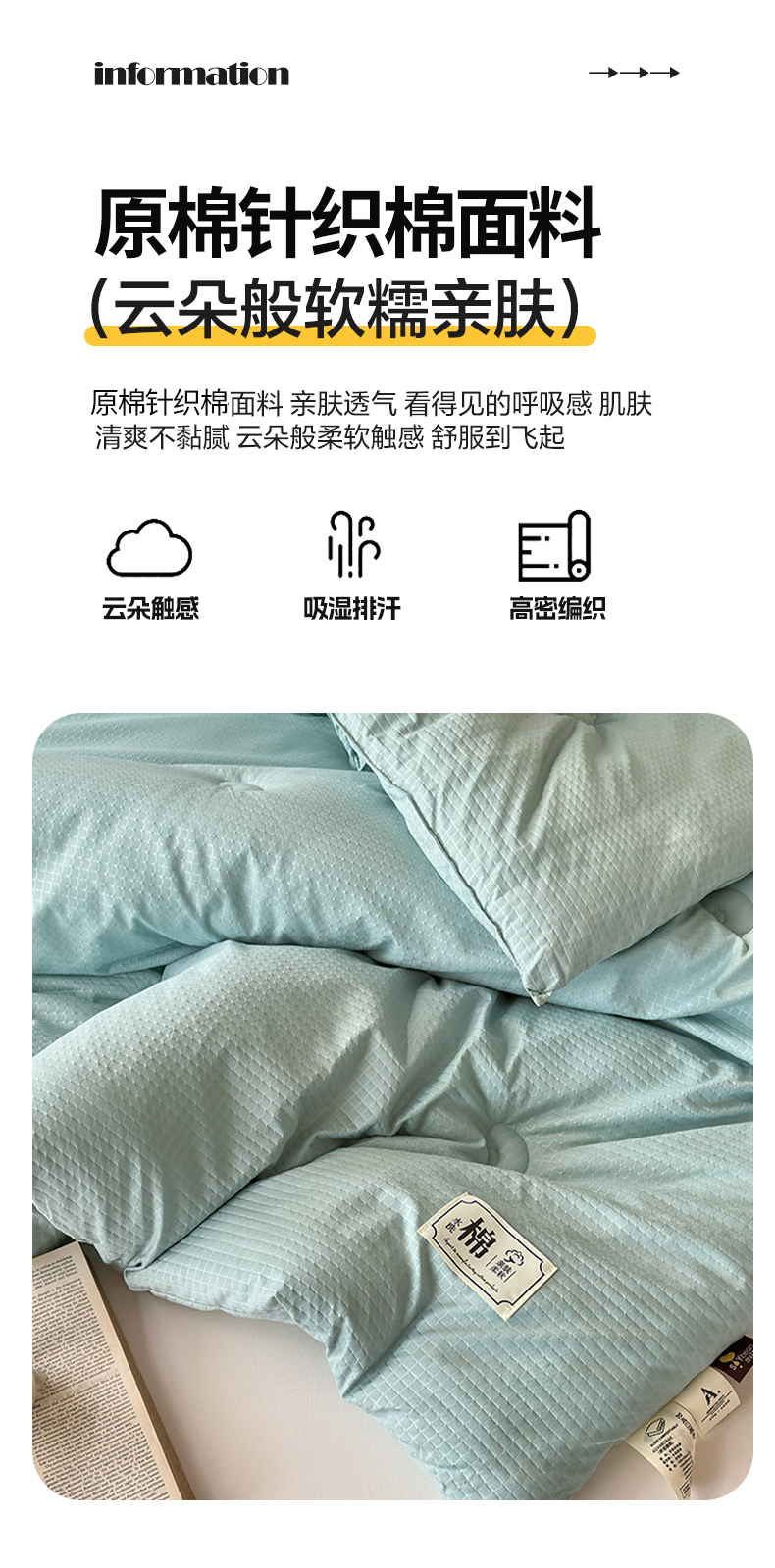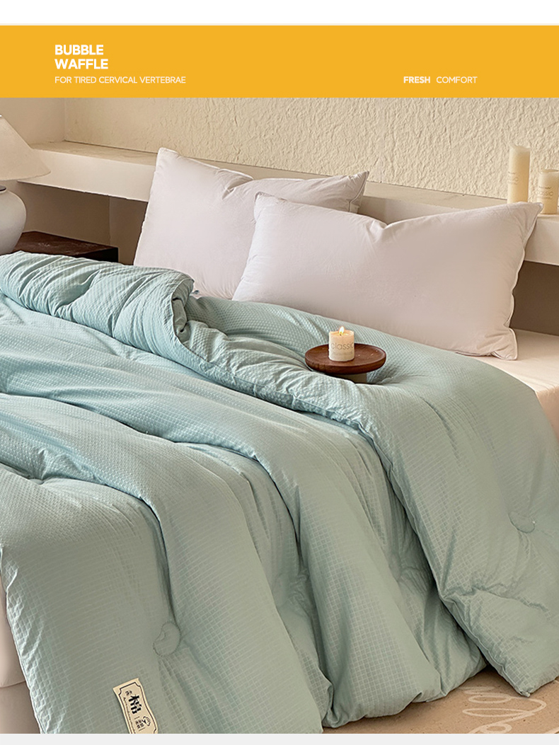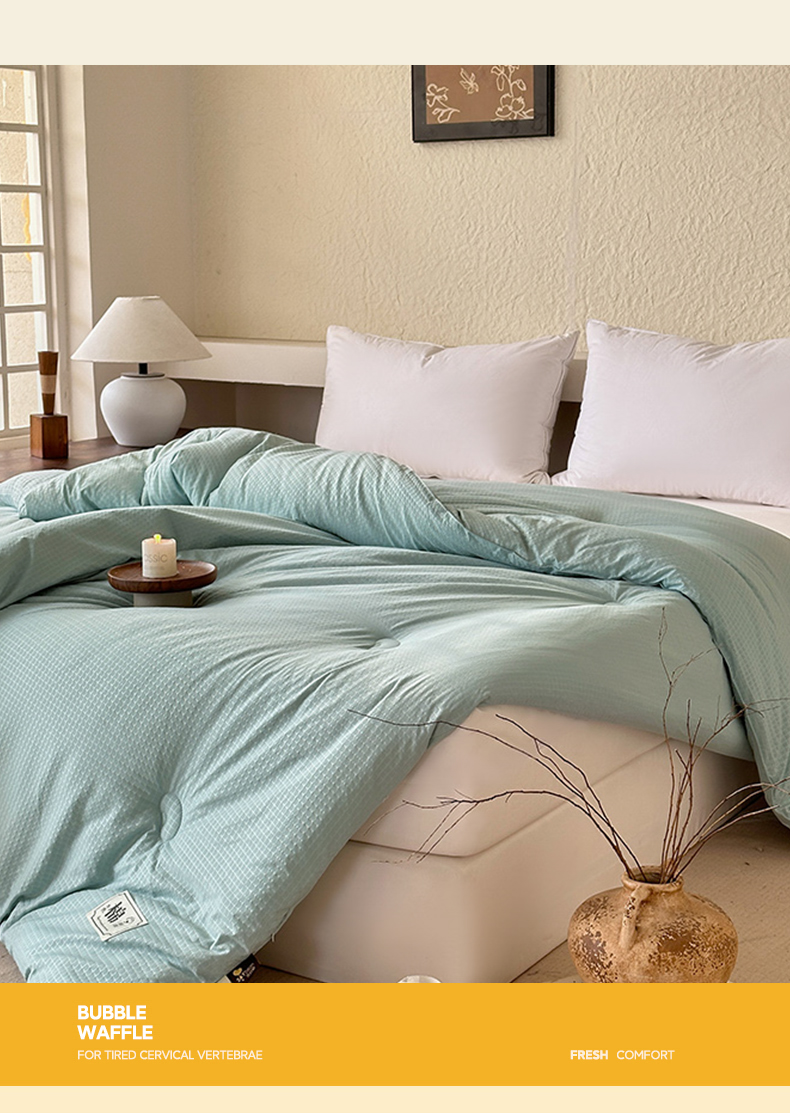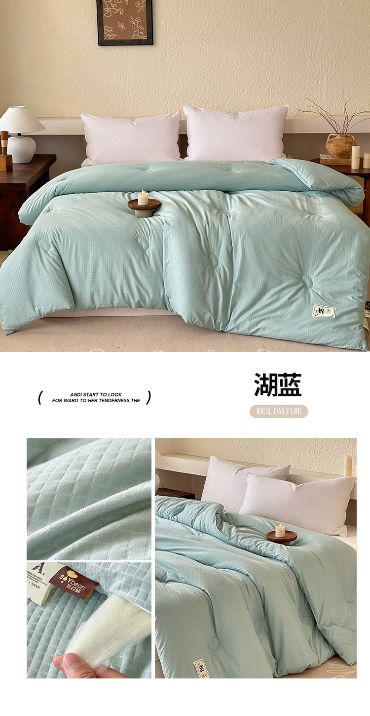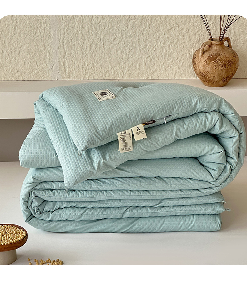 • 91家纺网 家纺一手货源 找家纺 蓝雀翎 2025新款原棉针织棉华夫格大豆被子被芯 湖蓝