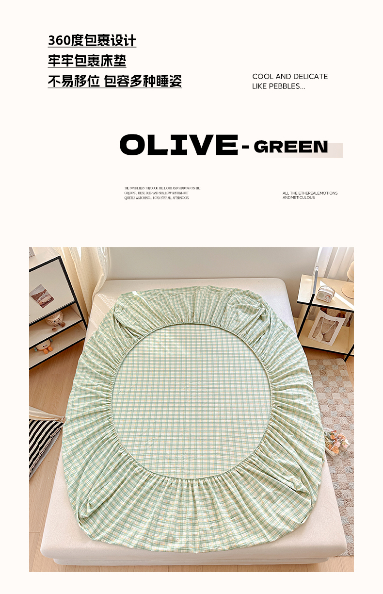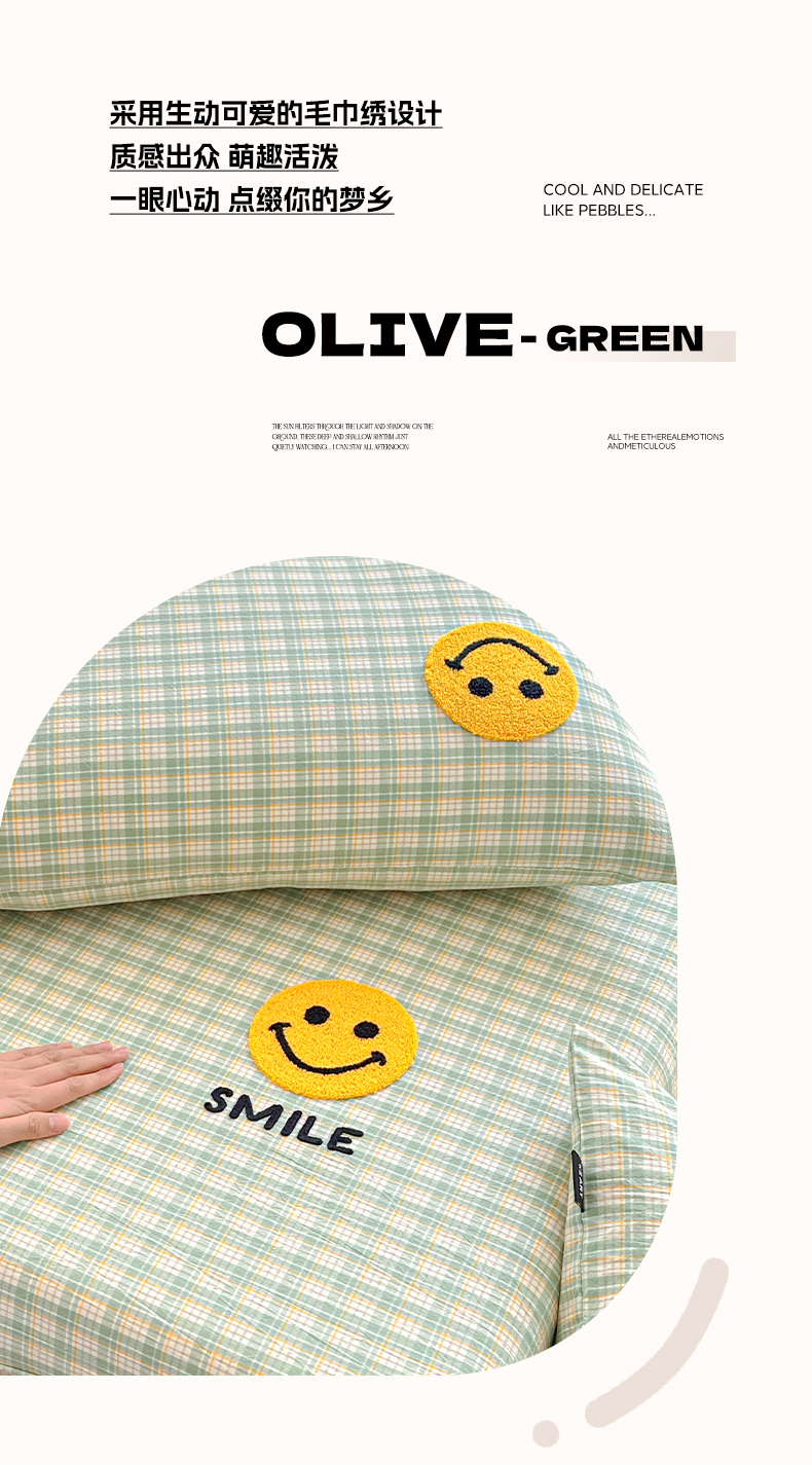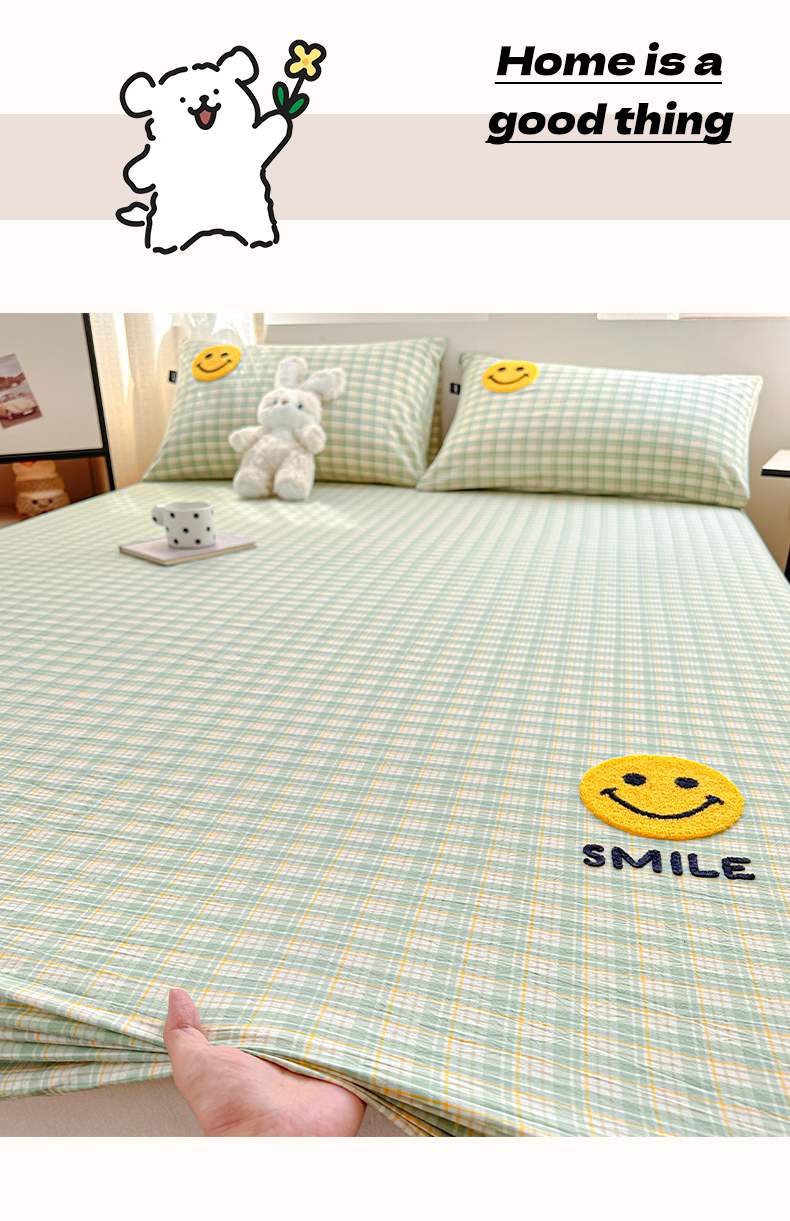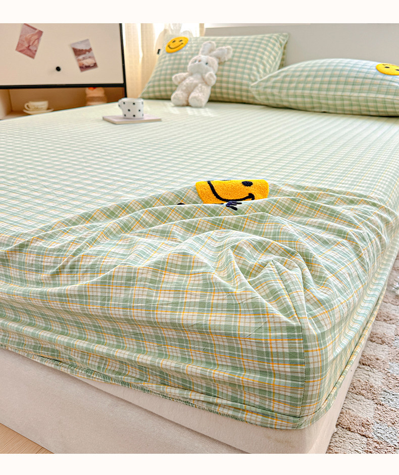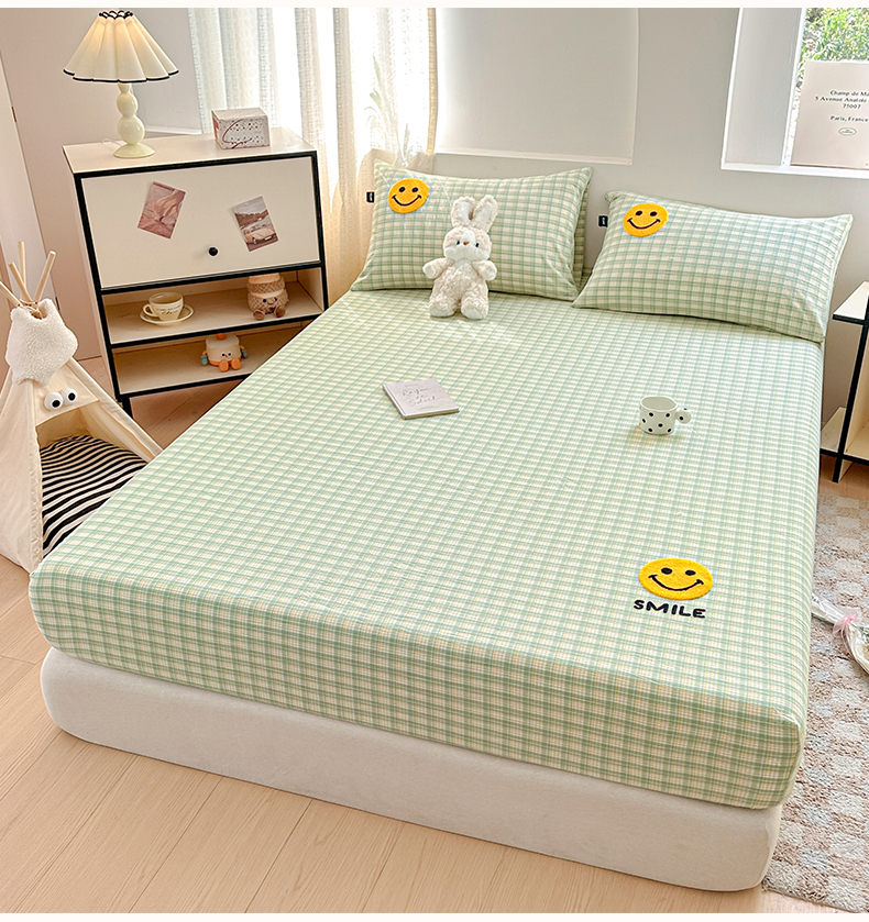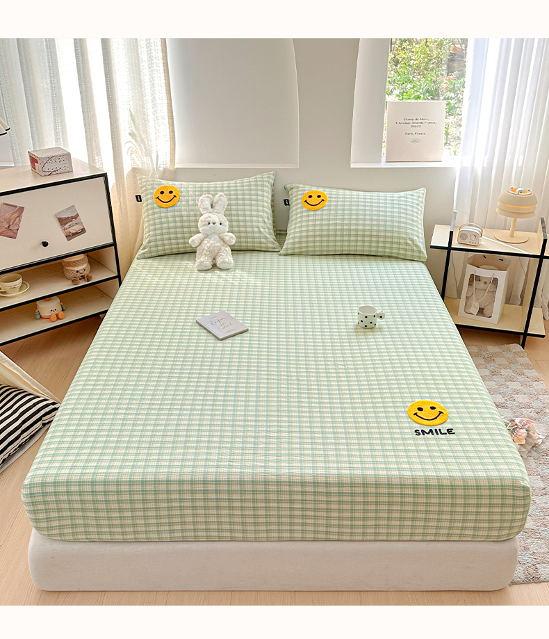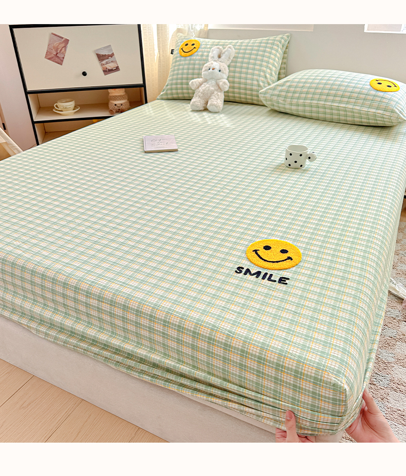 乐美家纺 2025秋冬新款全棉色织水洗棉床笠三件套系列 微笑
