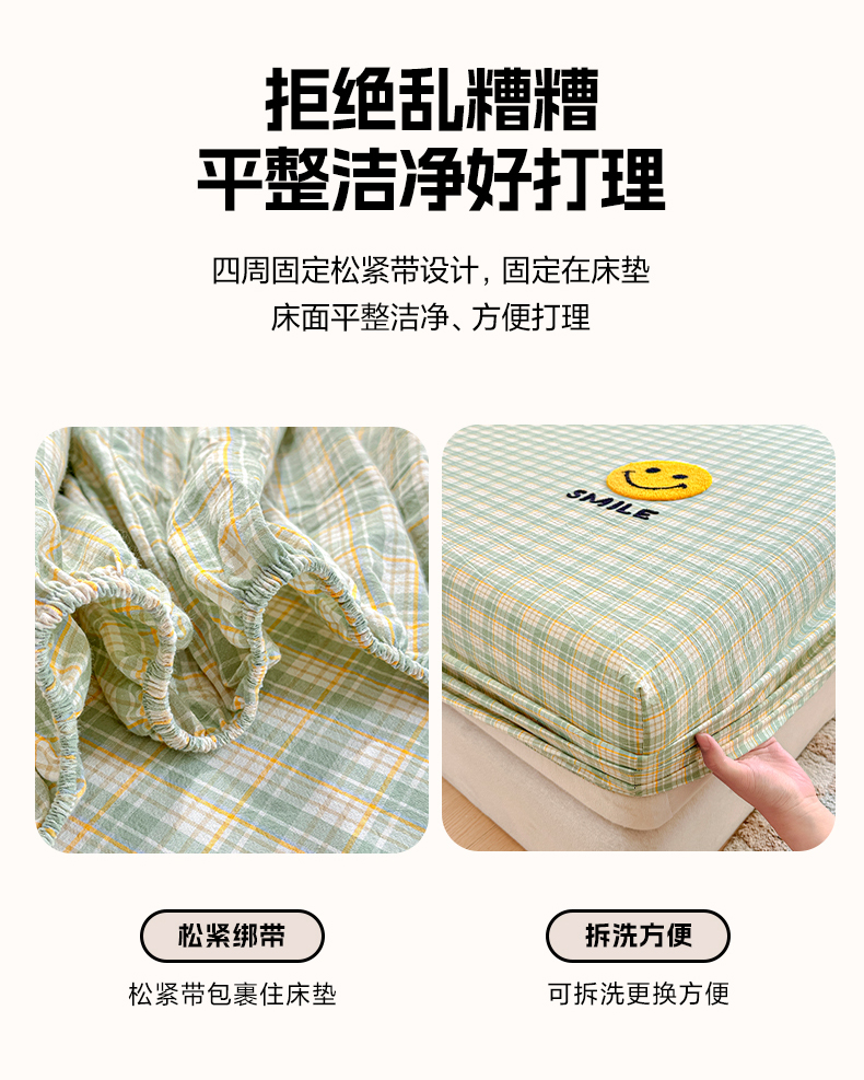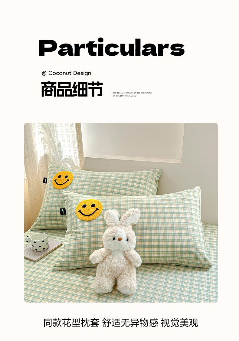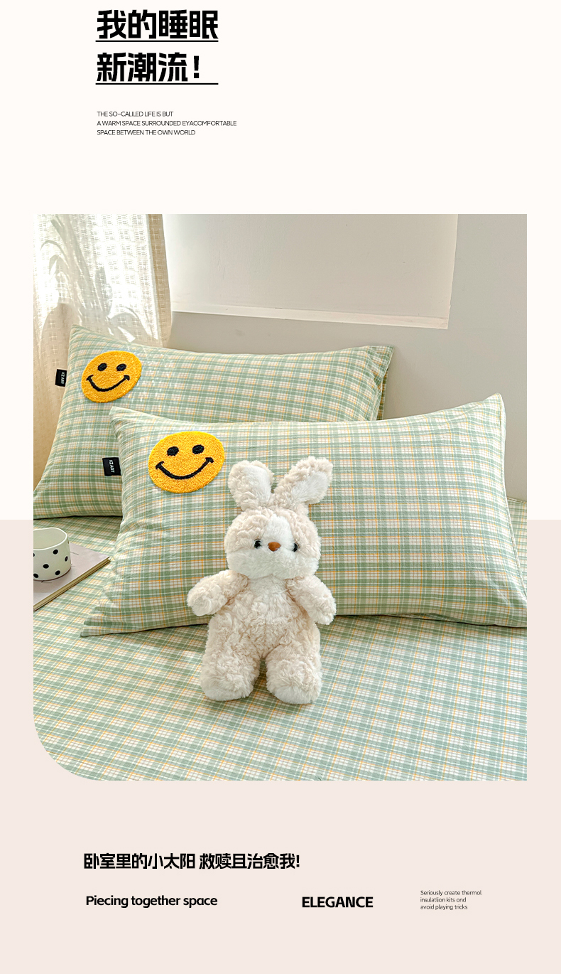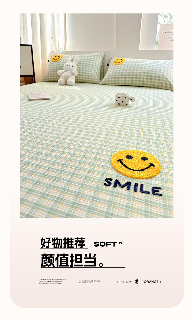当前位置: 91家纺网 > 商品网购 > 床上用品 > 床笠 > 乐美家纺 2025秋冬新款全棉色织水洗棉床笠三件套系列 微笑