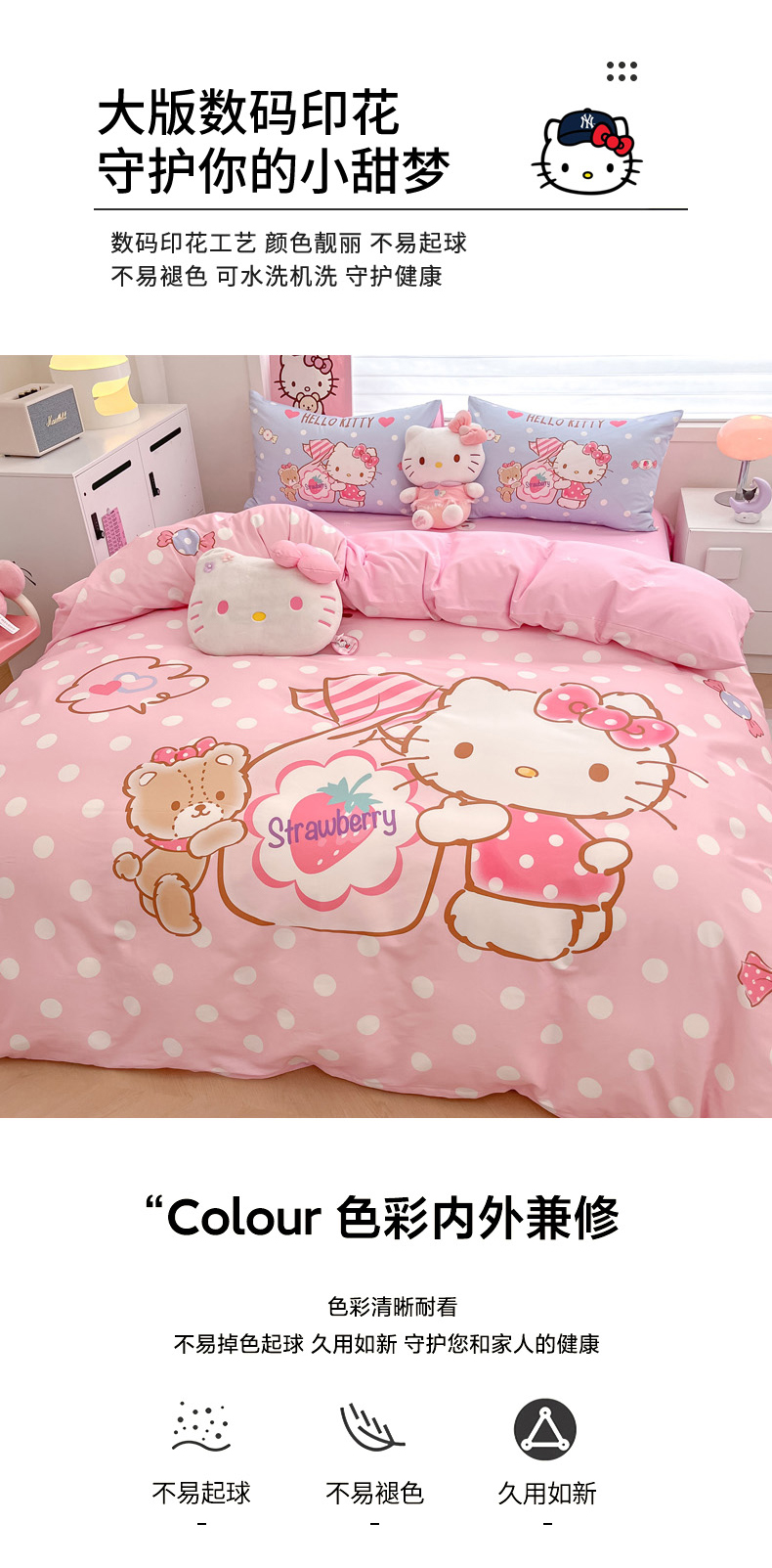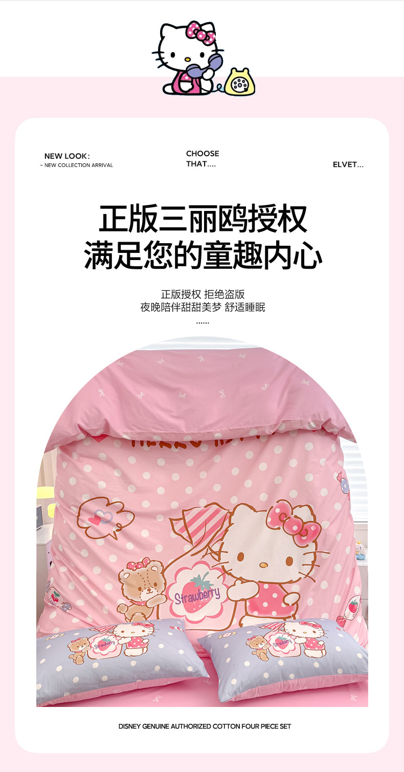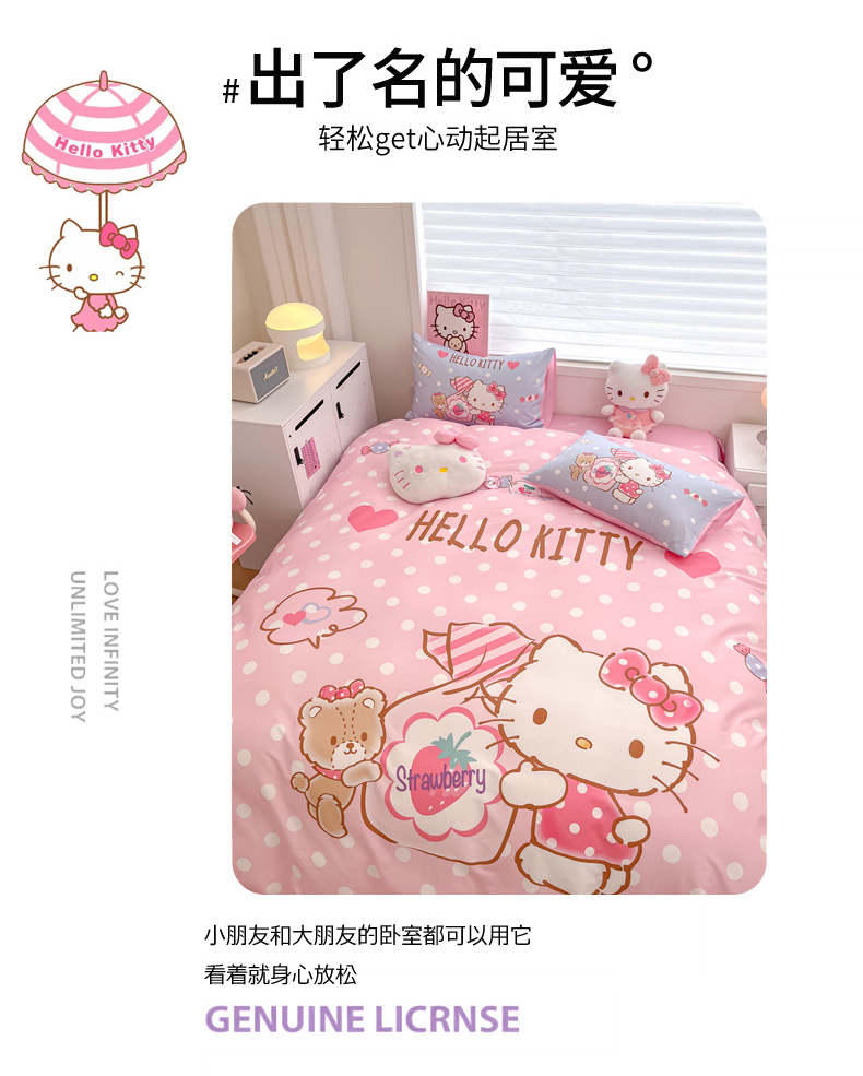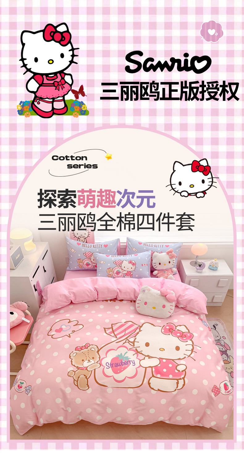 当前位置: 91家纺网 > 商品网购 > 床品套件 > 四件套 > 全棉普通四件套 > 暮思家居 2025新款正版授权三丽鸥大版全棉纯棉数码印花四件套系列-第四批 大版-草莓KT
