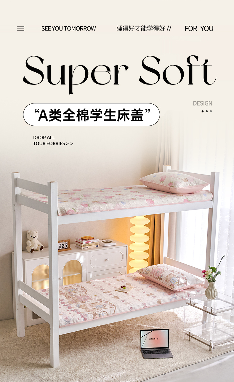 • 91家纺网 家纺一手货源 找家纺 X猫先生 2025小清新全棉学生床盖-新增花型 安缦小熊