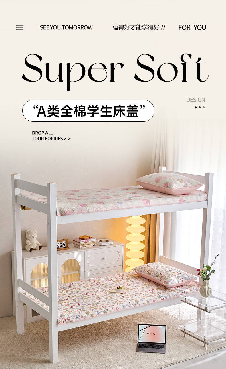 • 91家纺网 家纺一手货源 找家纺 X猫先生 2025小清新全棉学生床盖-新增花型 花语兔兔