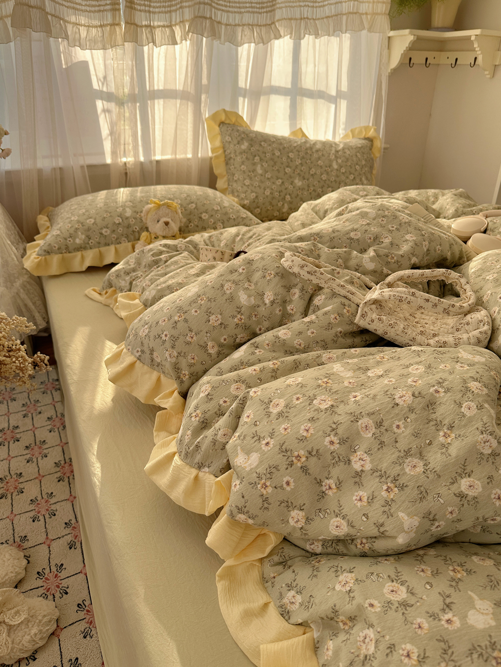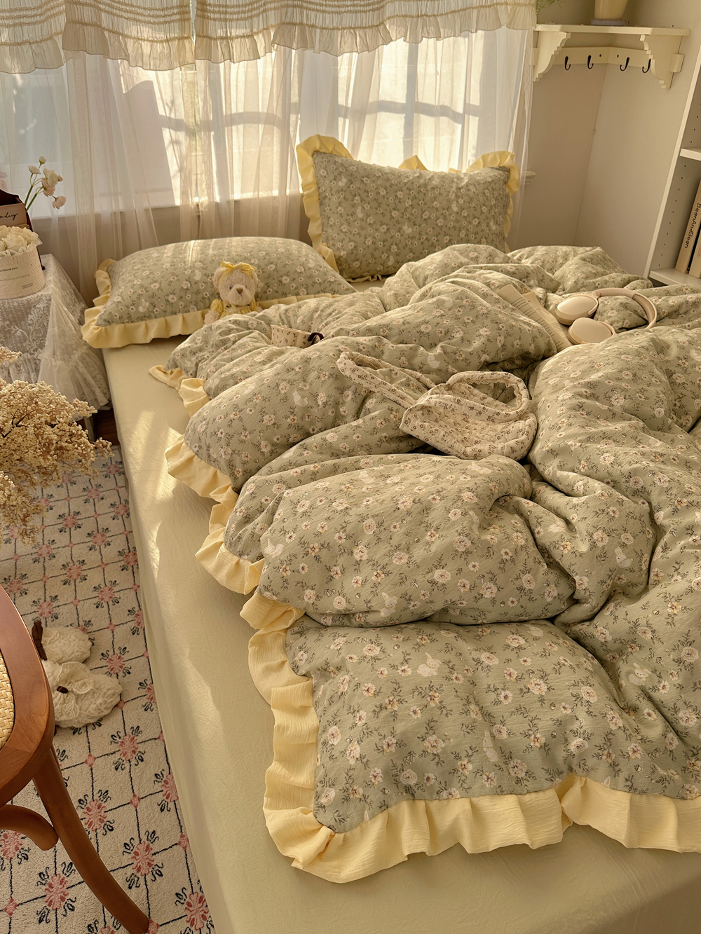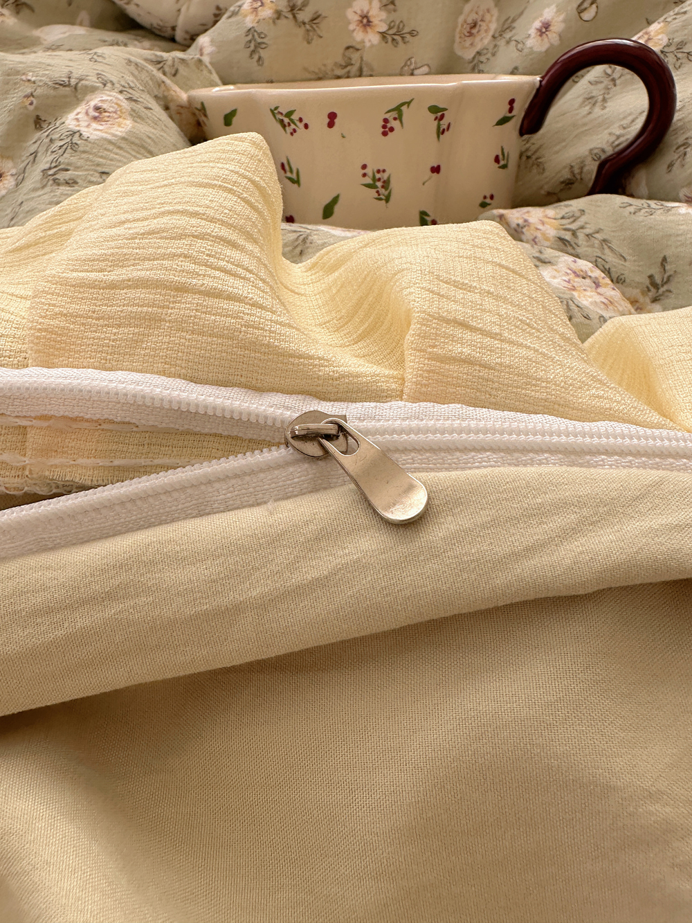 当前位置: 91家纺网 > 商品网购 > 床品套件 > 四件套 > 双层纱四件套 > 顾里家纺 2025新款韩系花边皱皱纱四件套 白茶落海