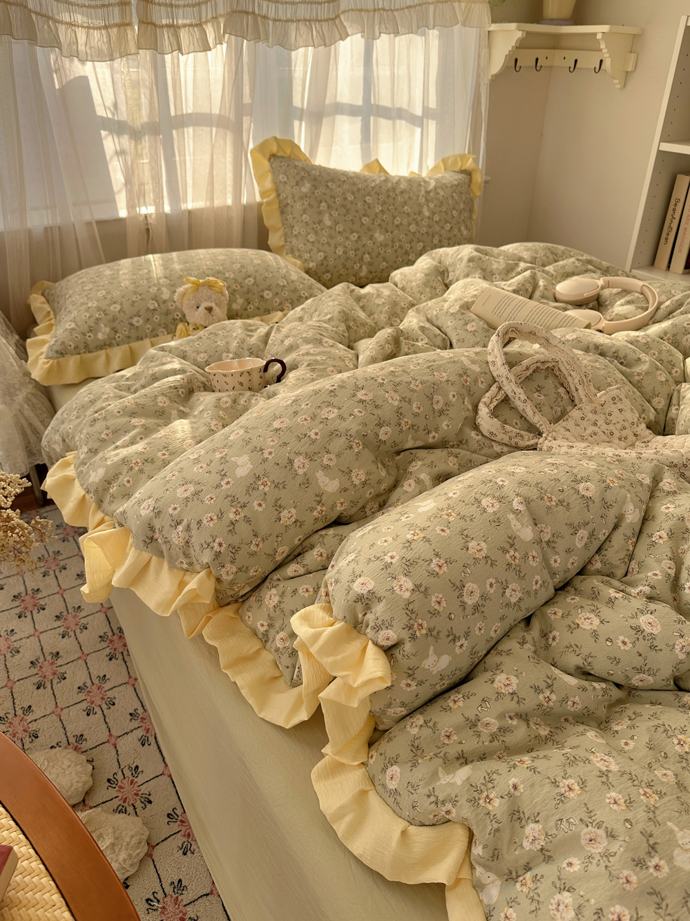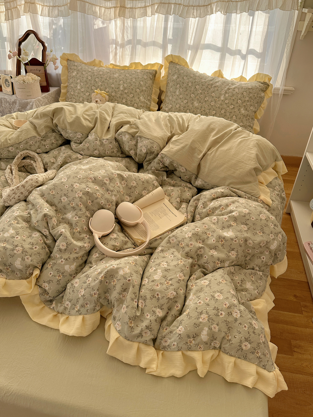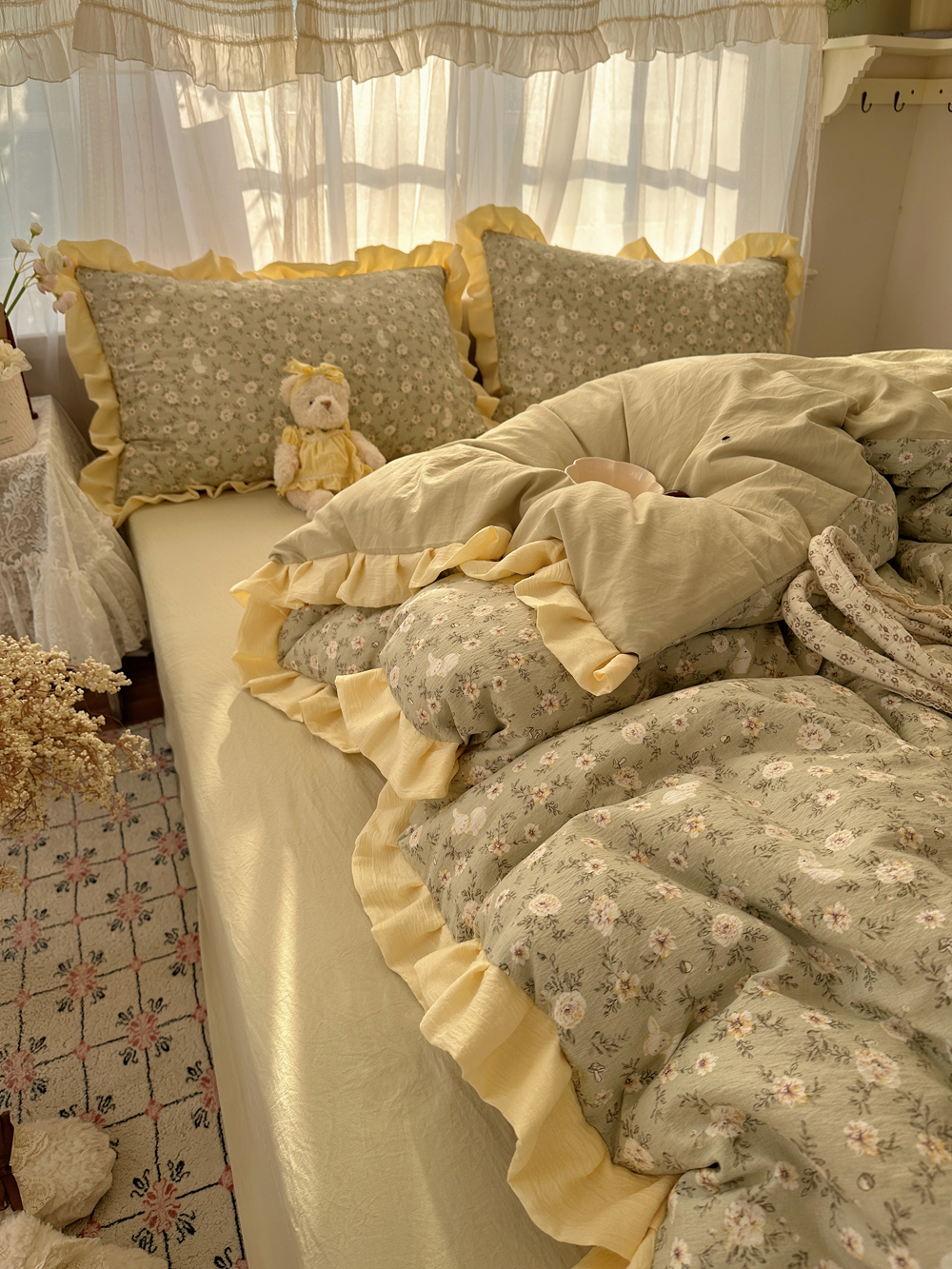 当前位置: 91家纺网 > 商品网购 > 床品套件 > 四件套 > 双层纱四件套 > 顾里家纺 2025新款韩系花边皱皱纱四件套 白茶落海