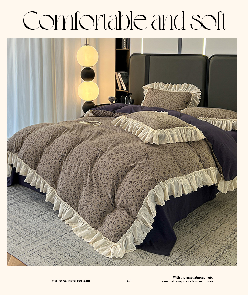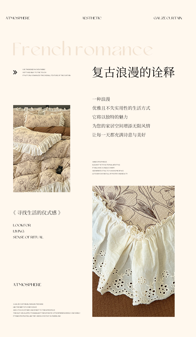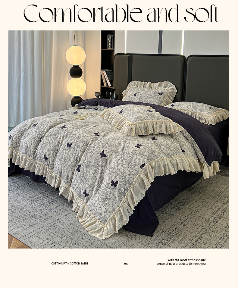 当前位置: 91家纺网 > 商品网购 > 床品套件 > 四件套 > 其它四件套 > 亨通家纺 2025新款原麻镂空宽花边四件套-花卉系列 墨绿絮语