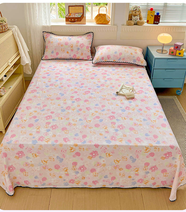逸林家纺《原希尔顿逸林》 2025新款云感皱皱纱镂空花边床单单品床单单件单床单 春风里