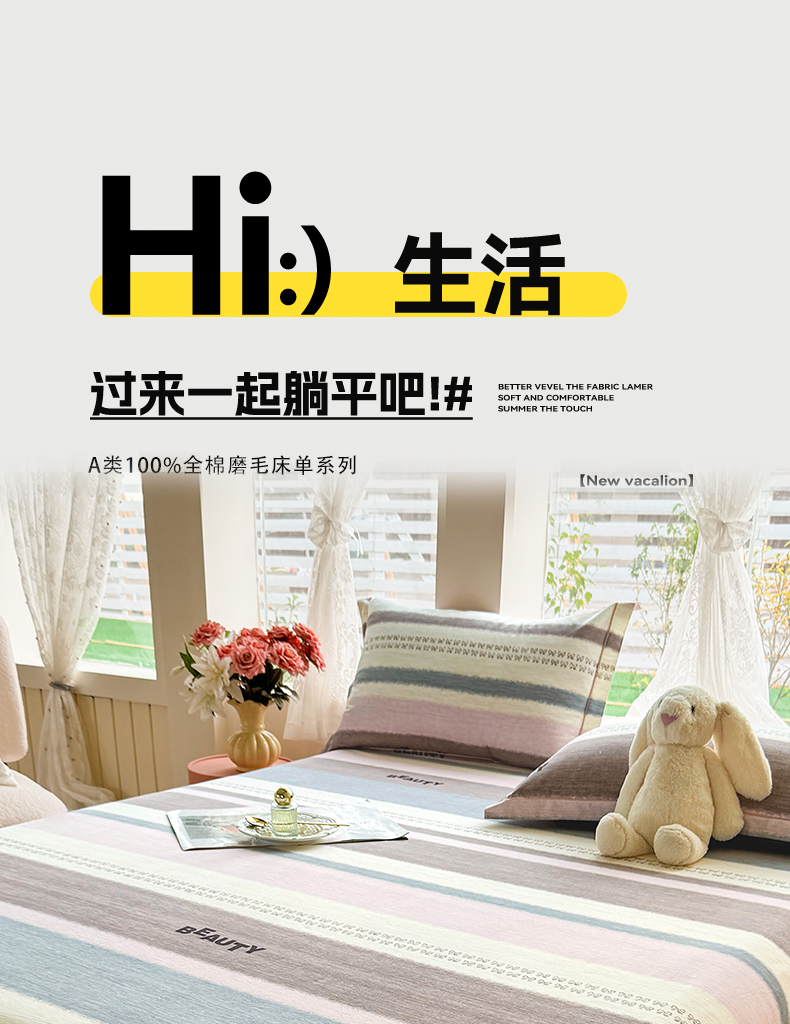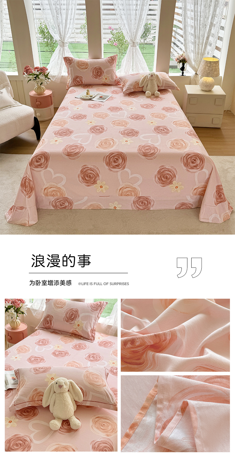 • 91家纺网 家纺一手货源 找家纺 壹贝家纺 2025新款A类100%全棉纯棉磨毛床单单床单床单单件 浪漫的事
