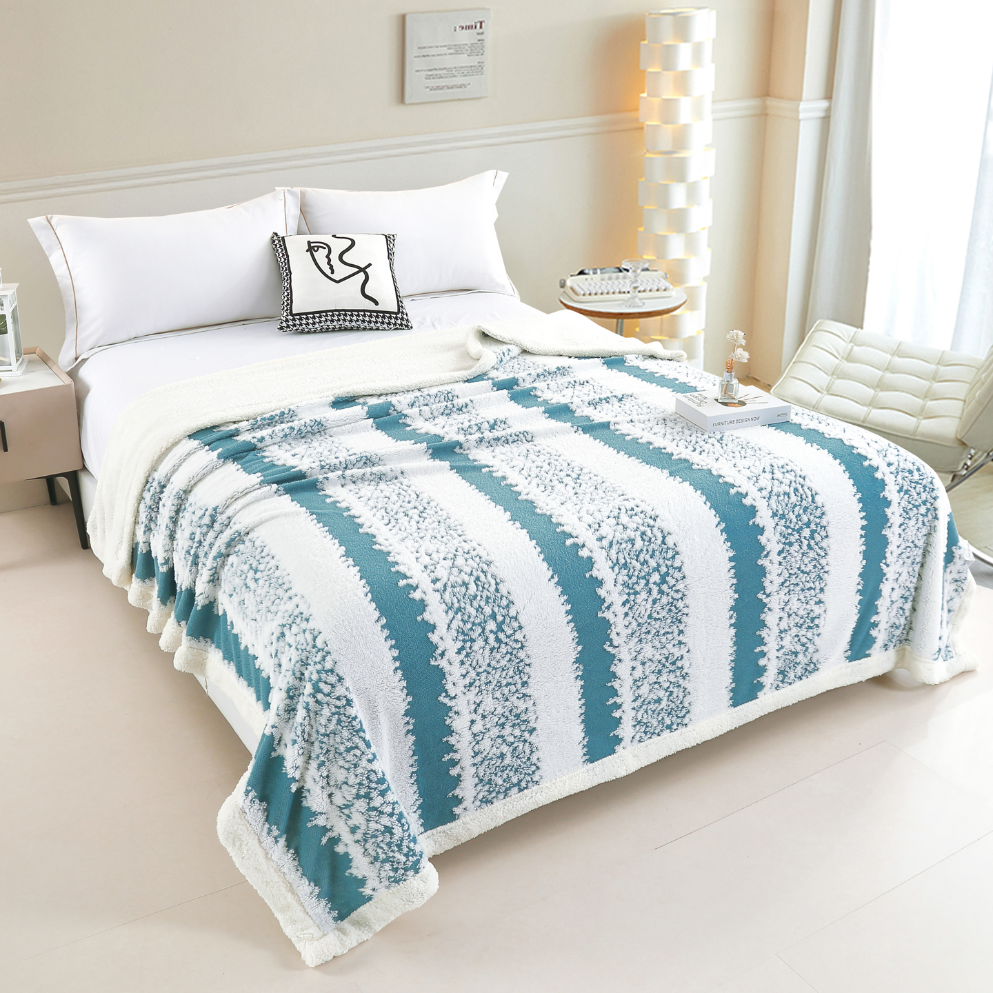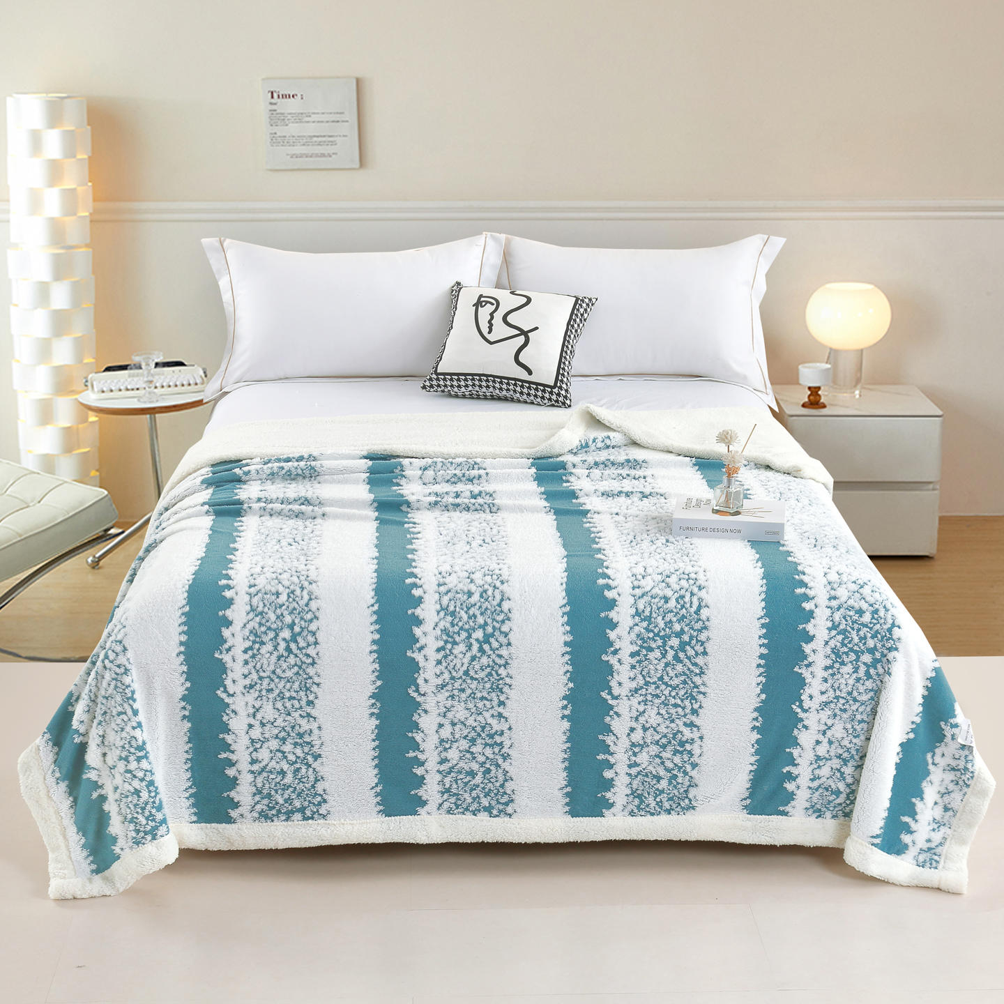 商品名称:巴木赫 2025新款渐变色阳离子双层羊羔绒毯子毛毯 渐变孔雀蓝