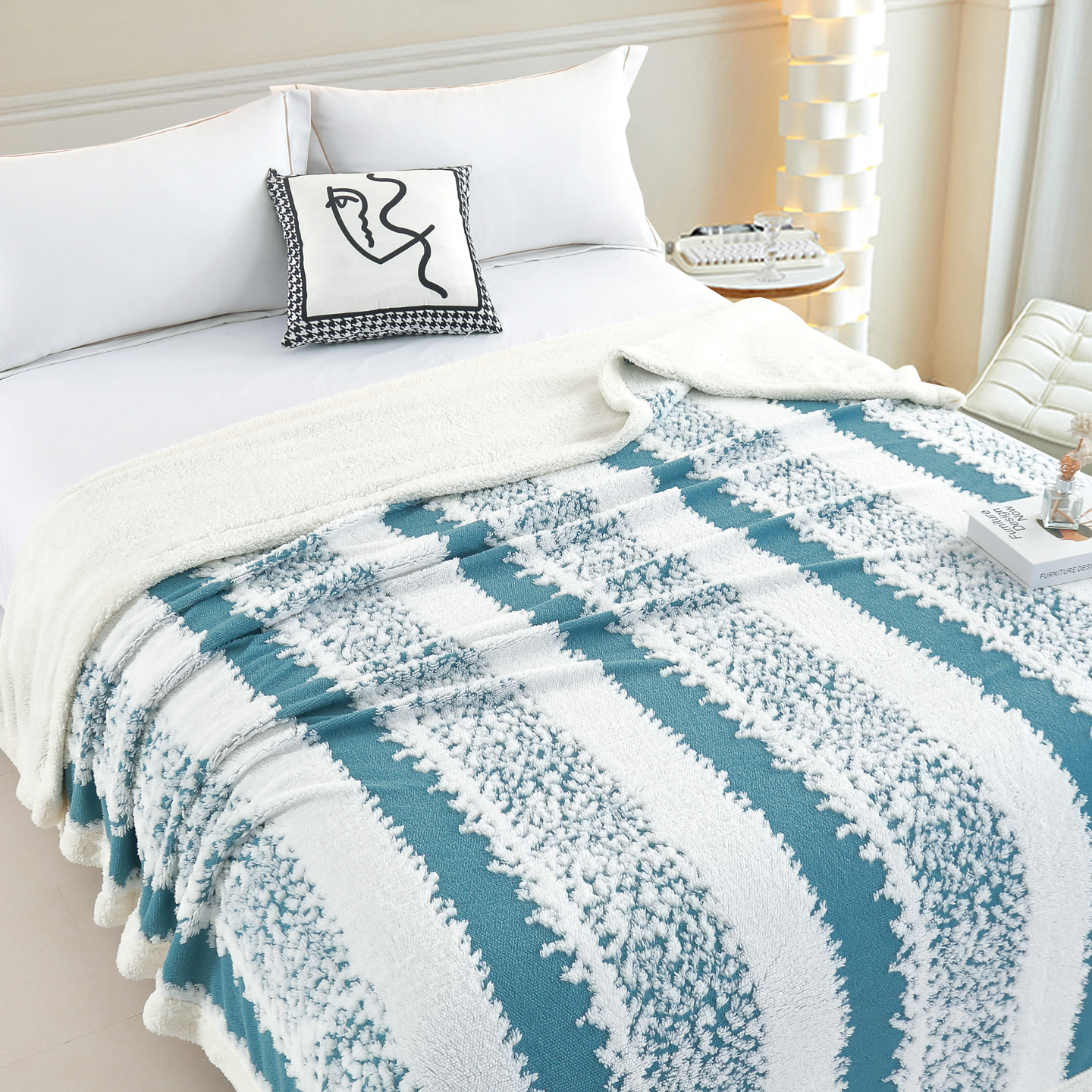 (总)巴木赫 2024新款子母抽条兔毛绒绒毯毯子,宾利蓝,粉色,卡其,墨绿,奶白,葡萄紫,浅驼,深灰,中灰