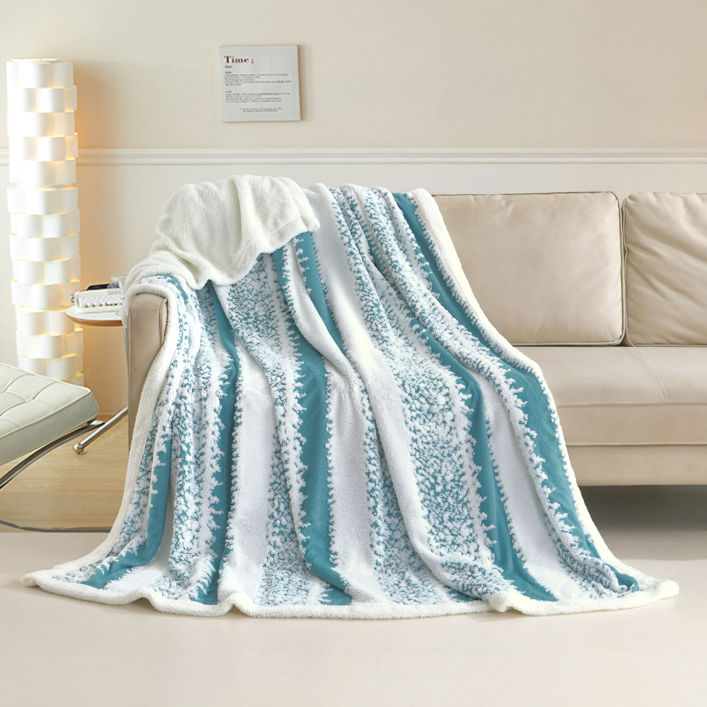 (总)巴木赫 2024新款提花朵朵绒双层羊羔绒毯,茶绿,粉色,咖啡,孔雀蓝,浅灰,浅驼