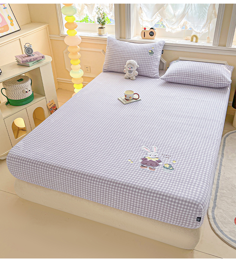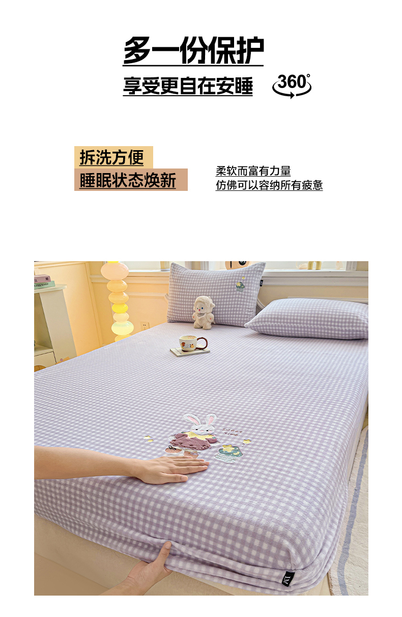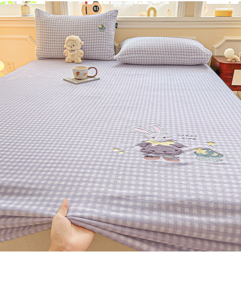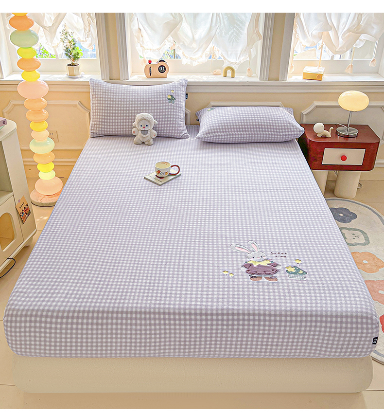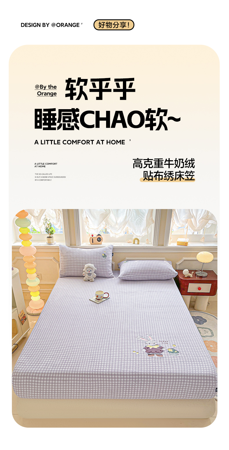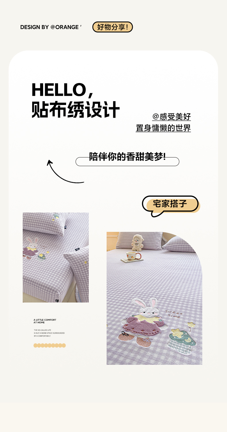 乐美家纺 2025新款A类高克重贴布绣牛奶绒床笠三件套 星星兔