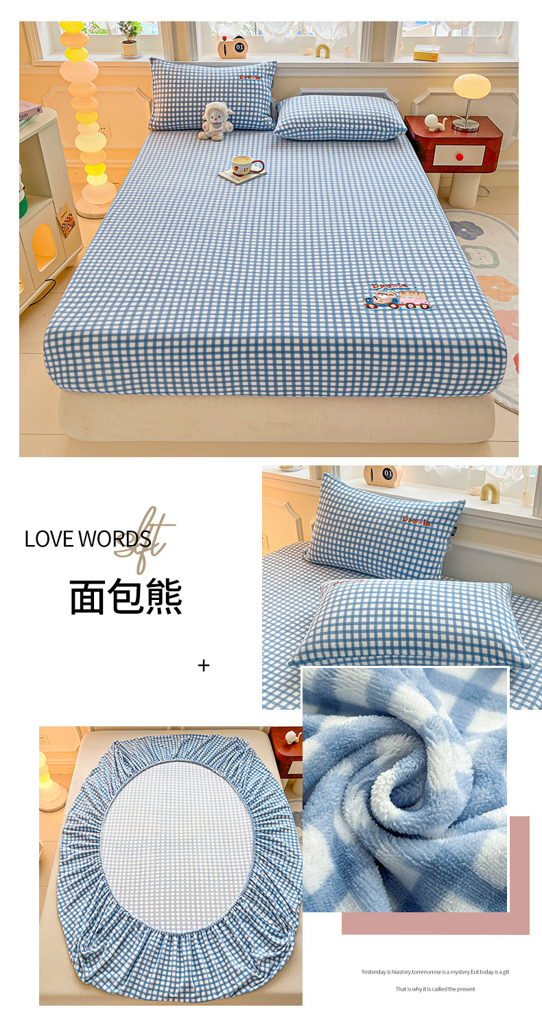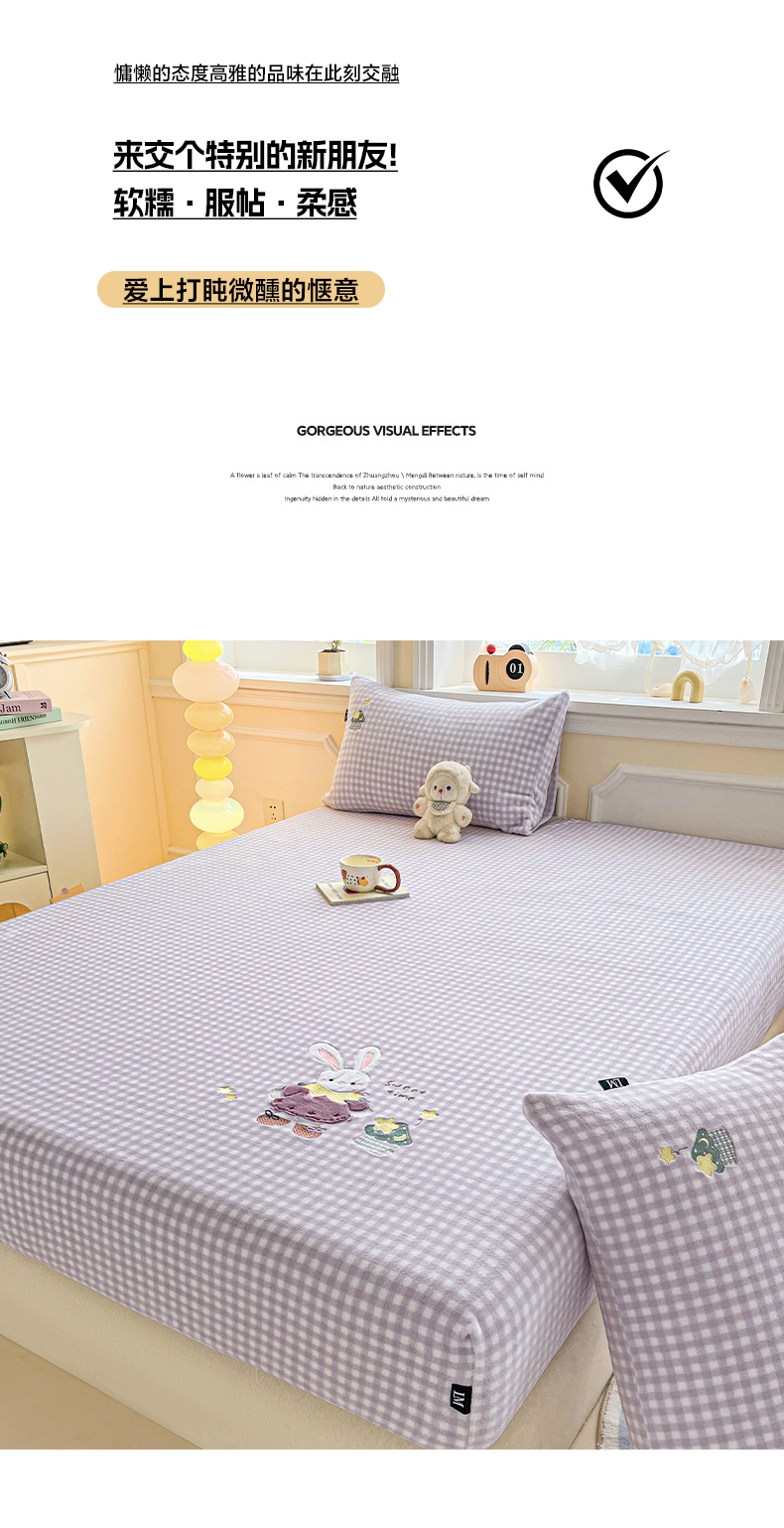 (总)乐美家纺 2025新款A类高克重刺绣牛奶绒床笠三件套,好朋狗,森林乐队,熊熊派对,小熊奶盖,萌宠派对,萝莉猫