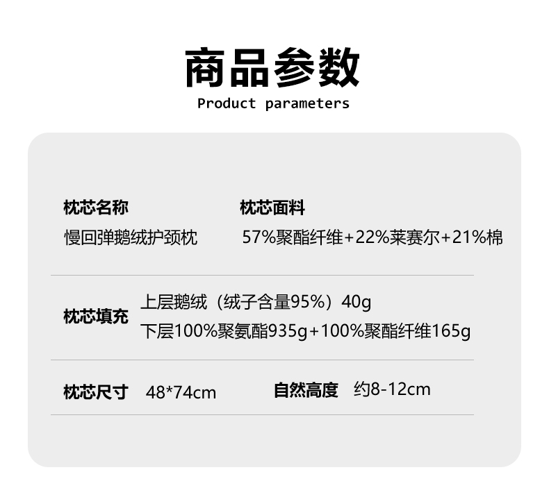 当前位置: 91家纺网 > 商品网购 > 枕头/枕芯/保健枕/颈椎枕 > 枕头枕芯 > (总)乐可 2025新款慢回弹鹅绒护颈枕记忆棉枕头枕芯