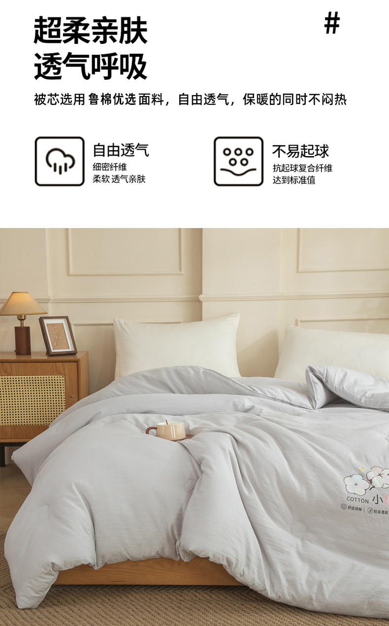 (总)大世界被王 2025新款木棉雅致棉花冬被被子被芯,灰色,白色