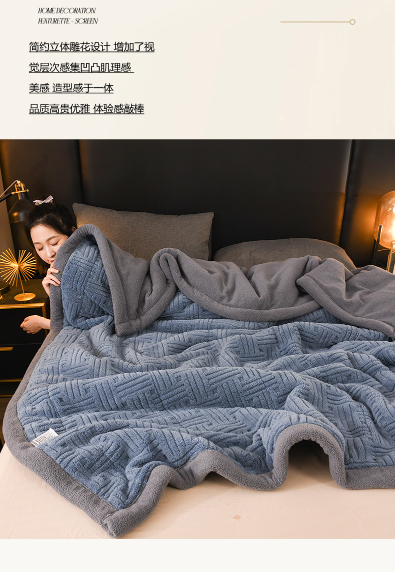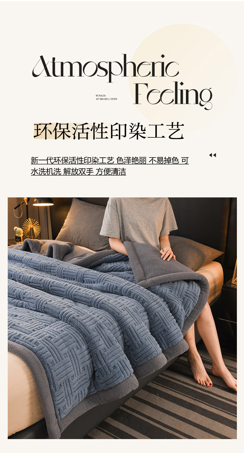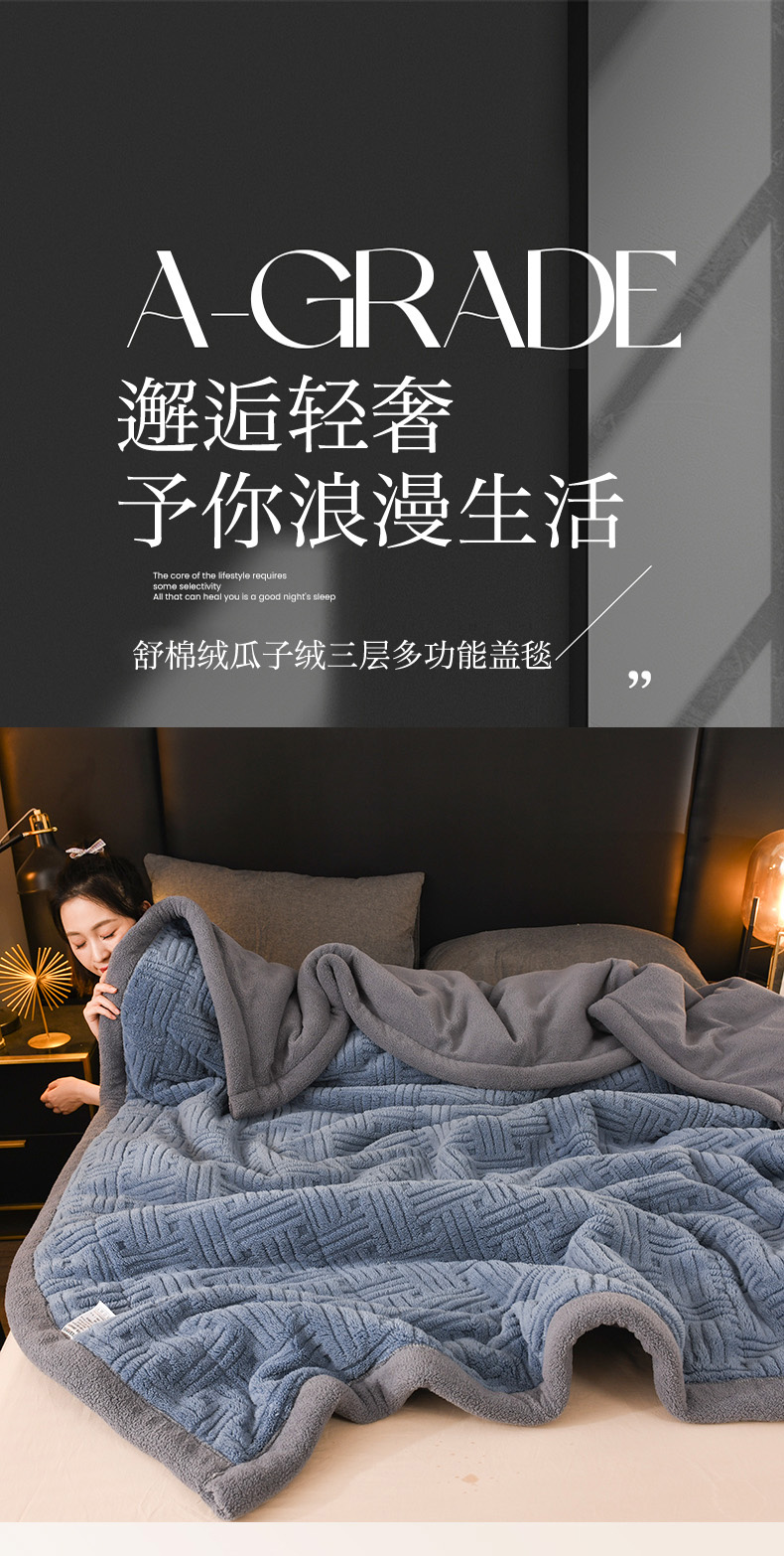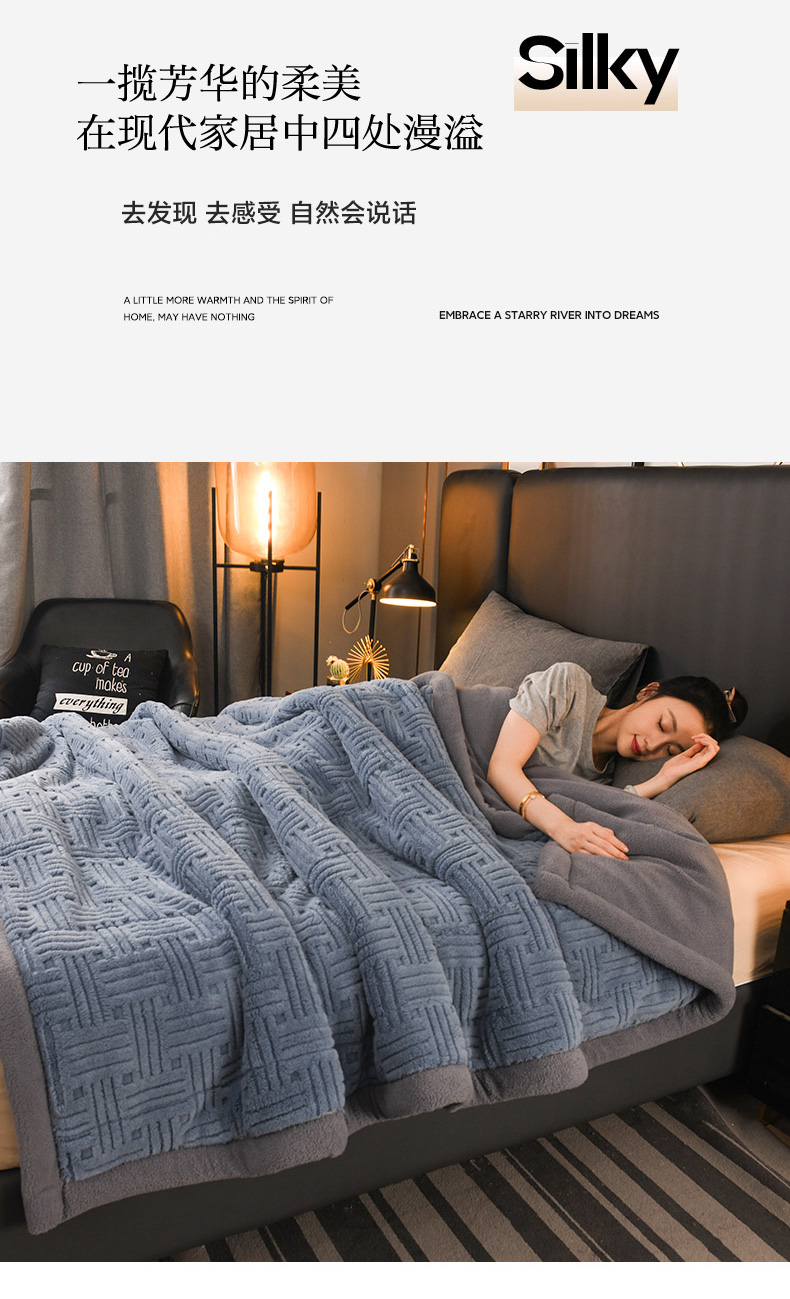 印季家纺 2025秋冬新款三层夹棉立体舒棉绒毛毯毯子多功能盖毯 柔蓝+灰