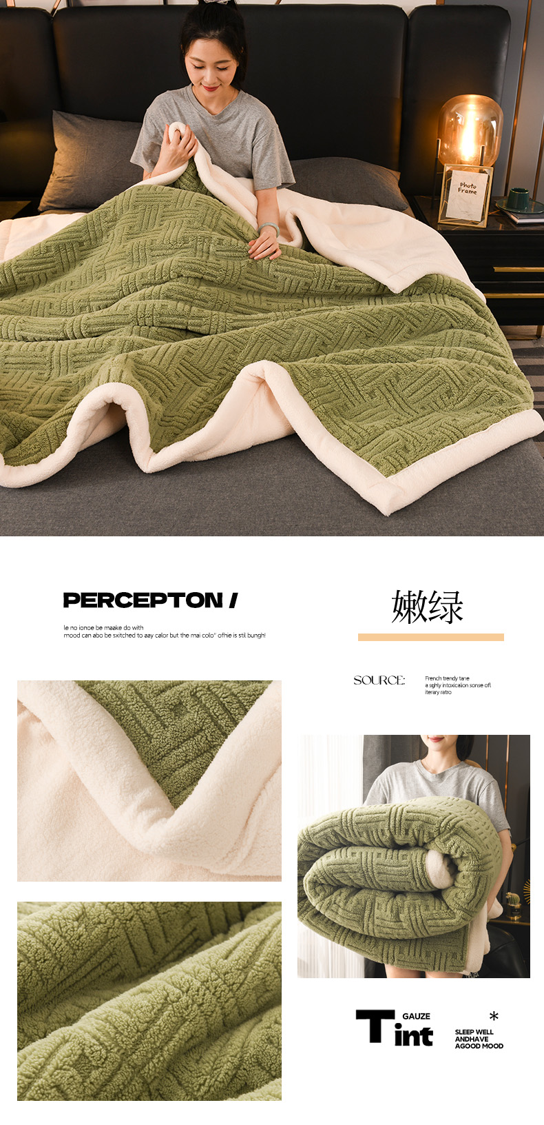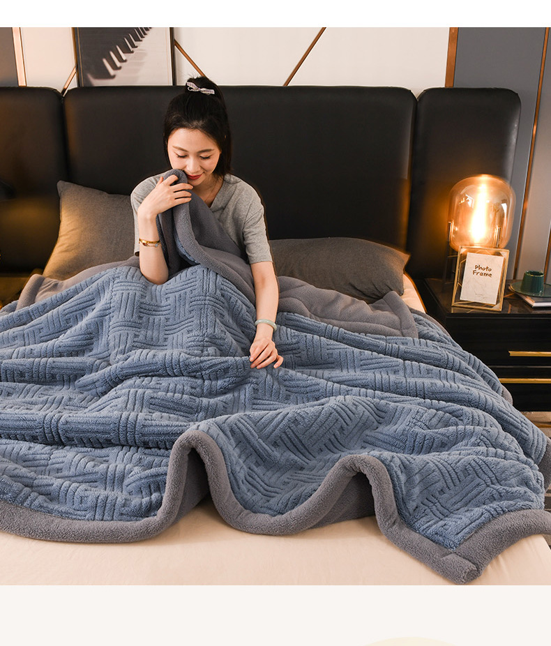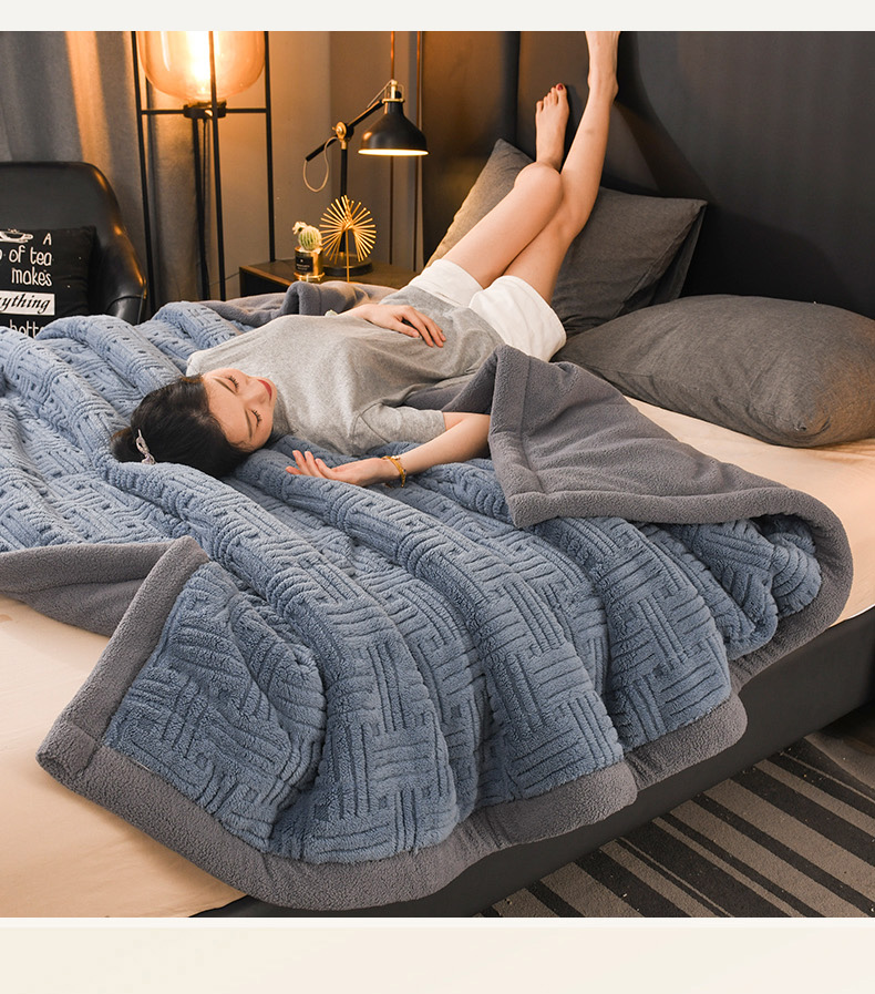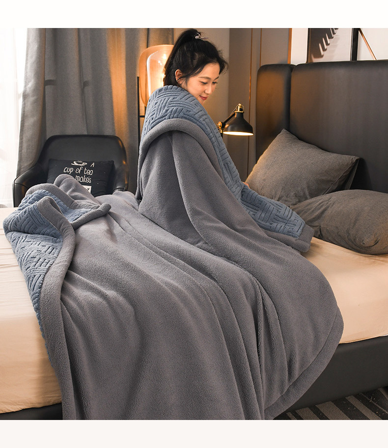 印季家纺 2025秋冬新款三层夹棉立体舒棉绒毛毯毯子多功能盖毯 柔蓝+灰