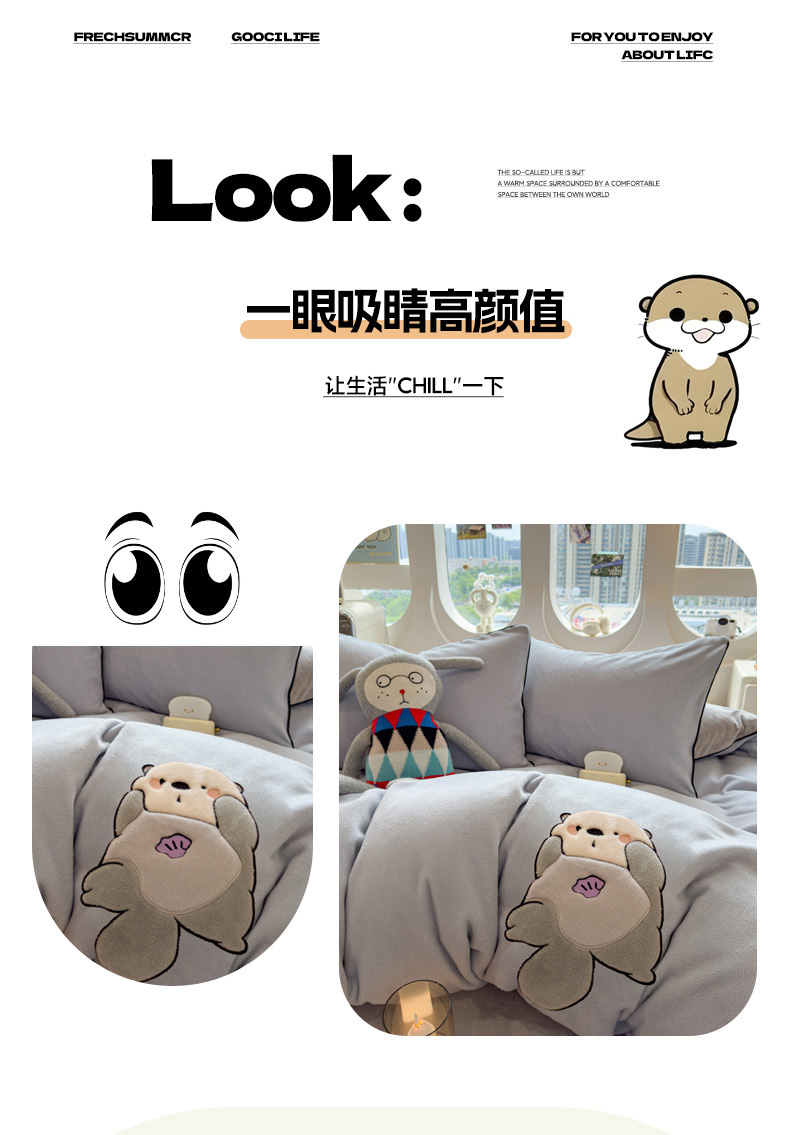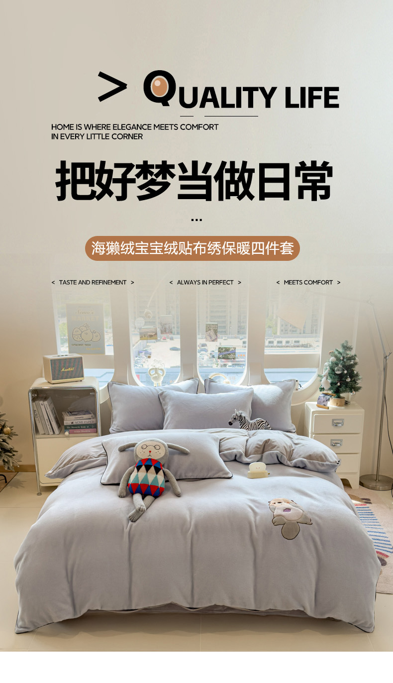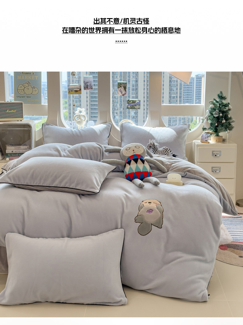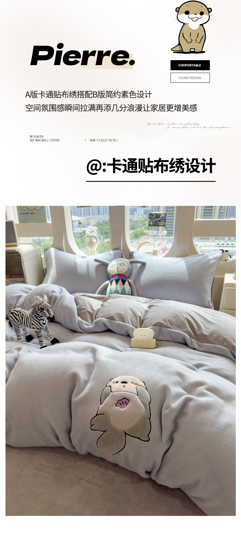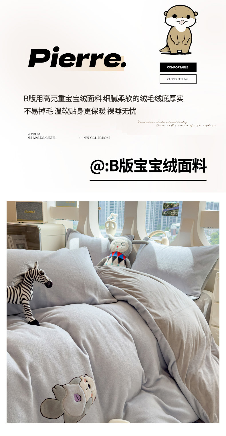 当前位置: 91家纺网 > 商品网购 > 床品套件 > 四件套 > 其它四件套 > 印季家纺 2025新款大肚腩-海獭绒贴布绣四件套 大肚腩-浅蓝-浅灰
