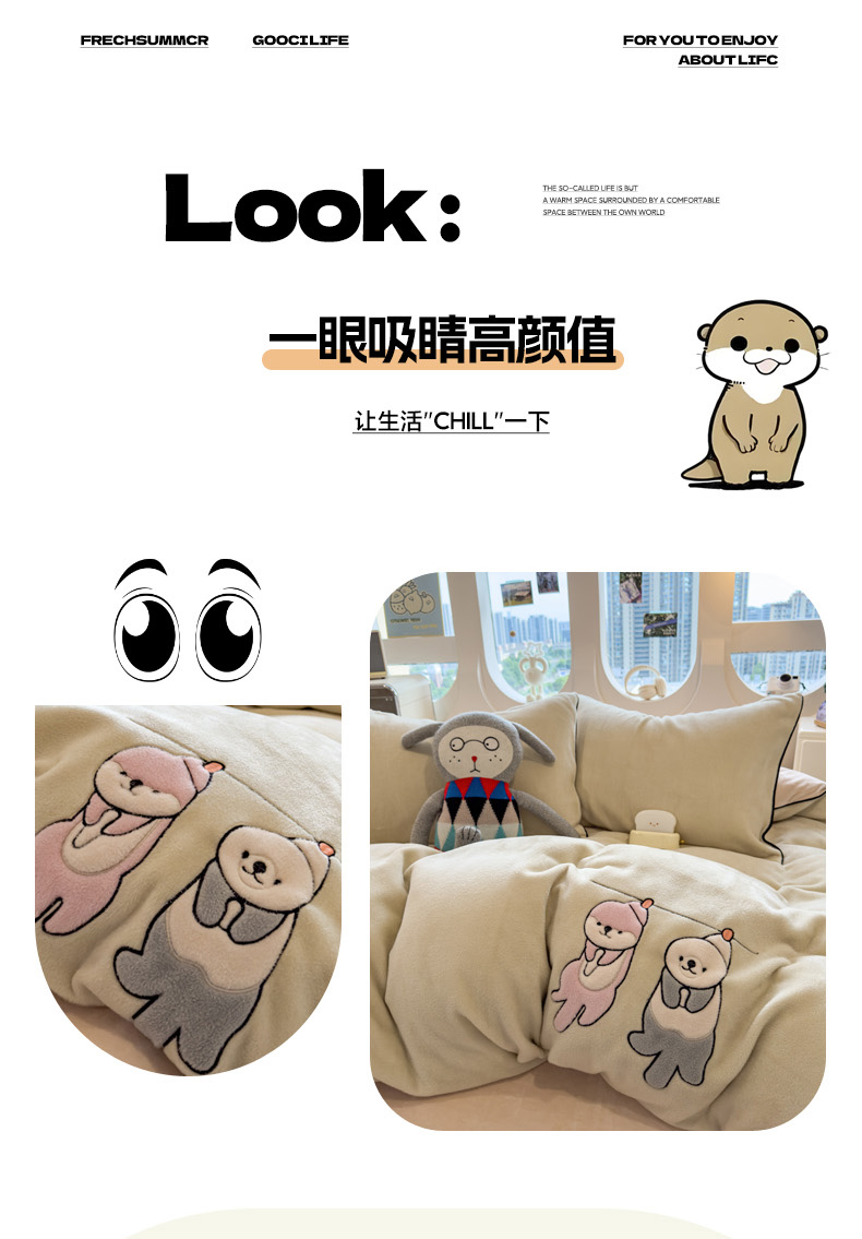 (总)印季家纺 2025新款小两口海獭绒贴布绣四件套