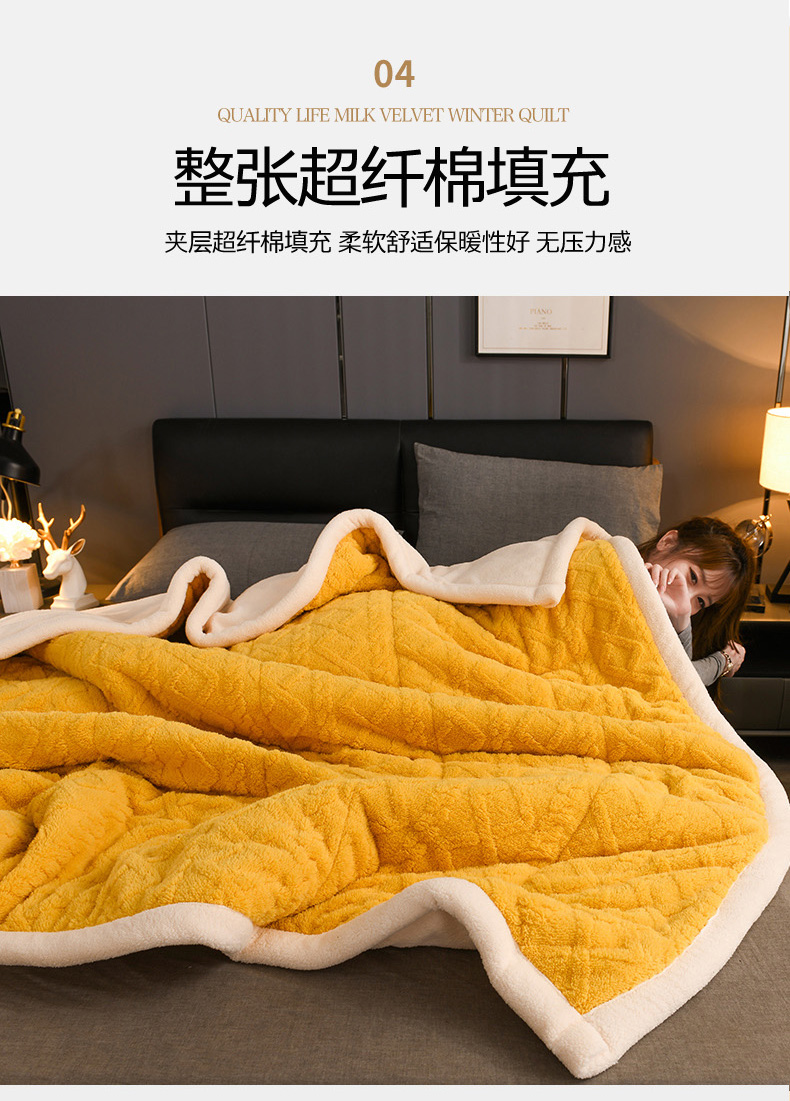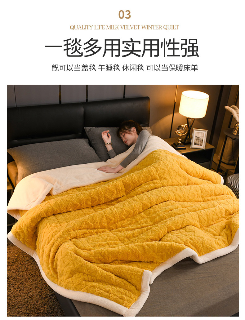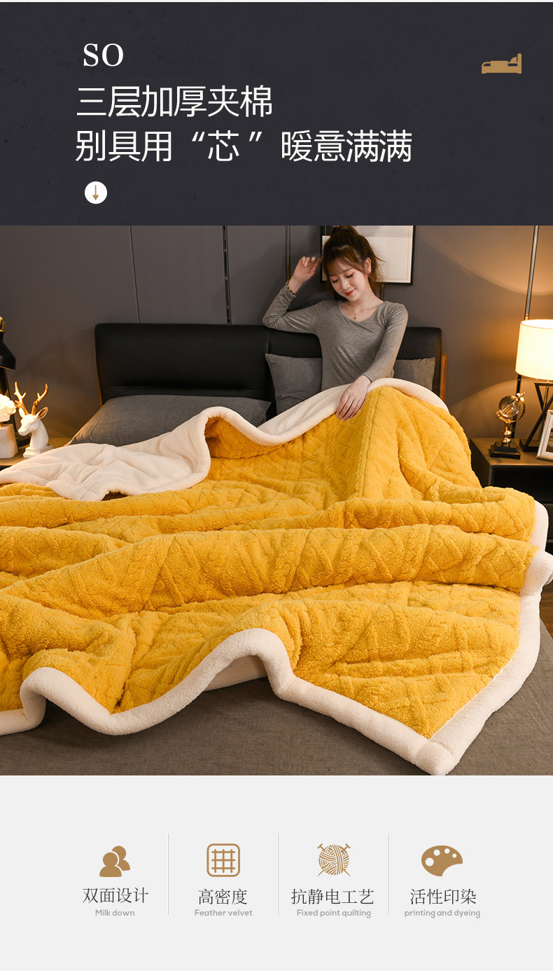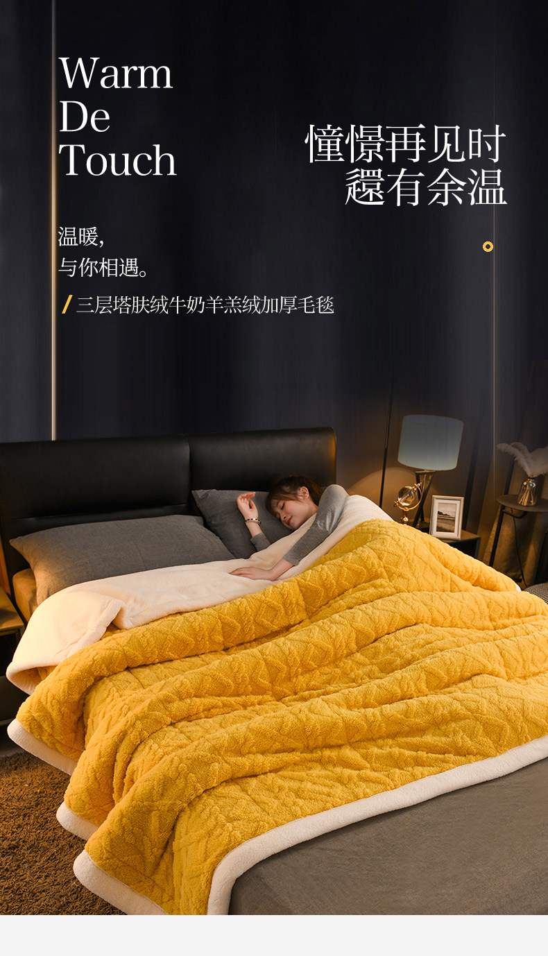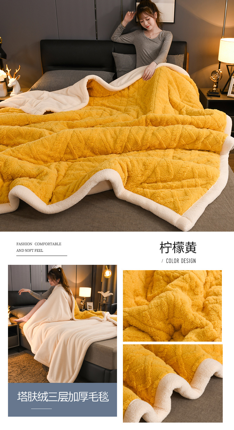 印季家纺 2025秋冬新款三层夹棉加厚-塔肤绒毛毯毯子多功能盖毯 柠檬黄