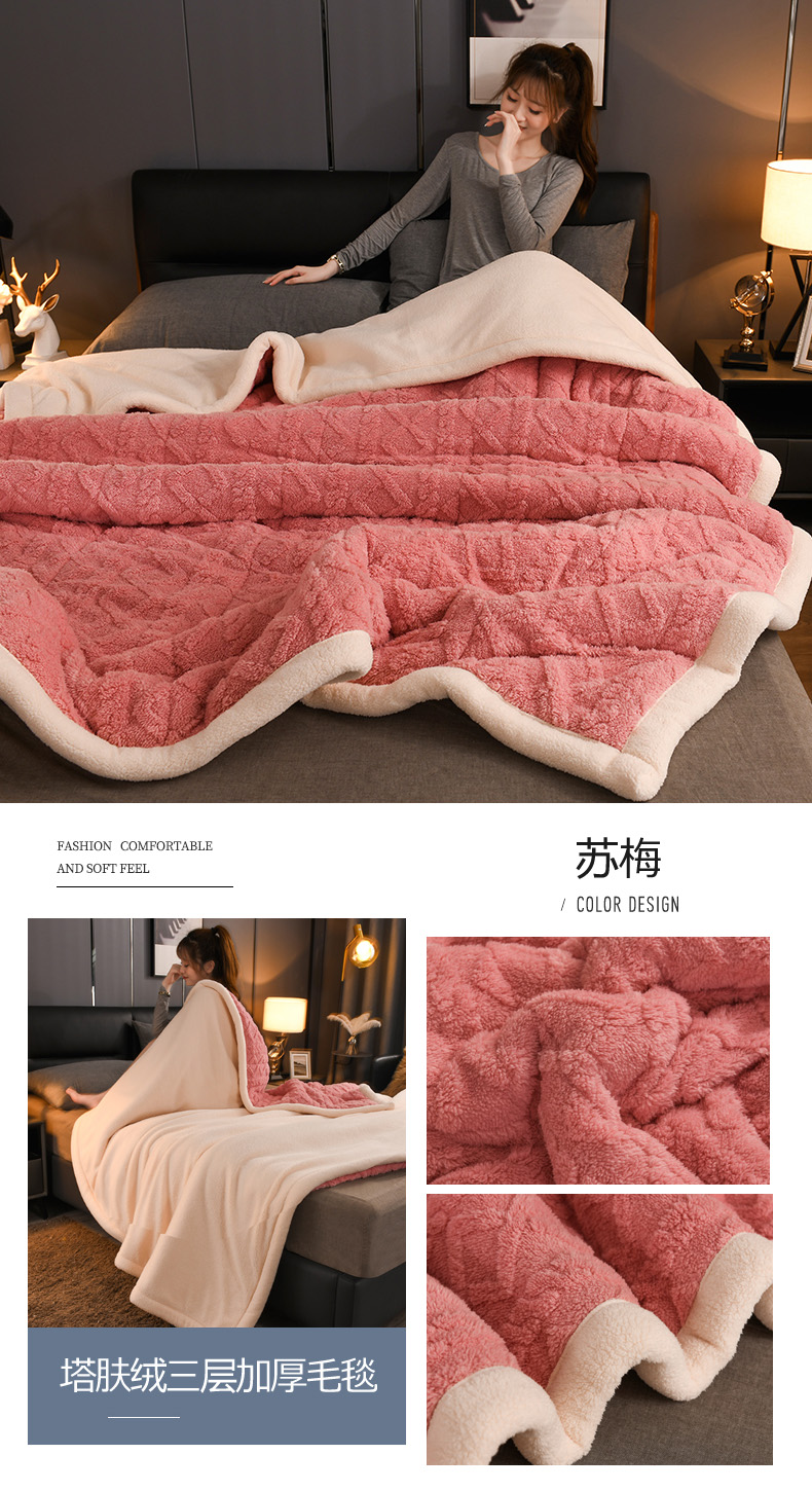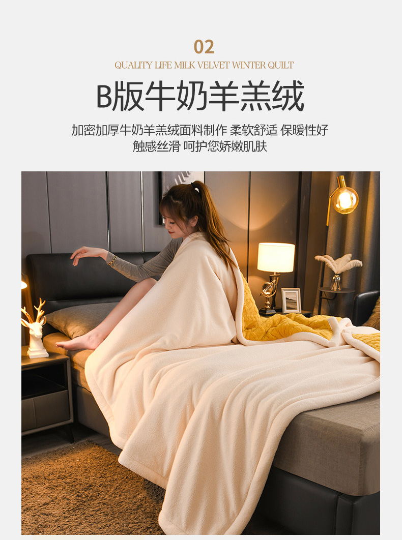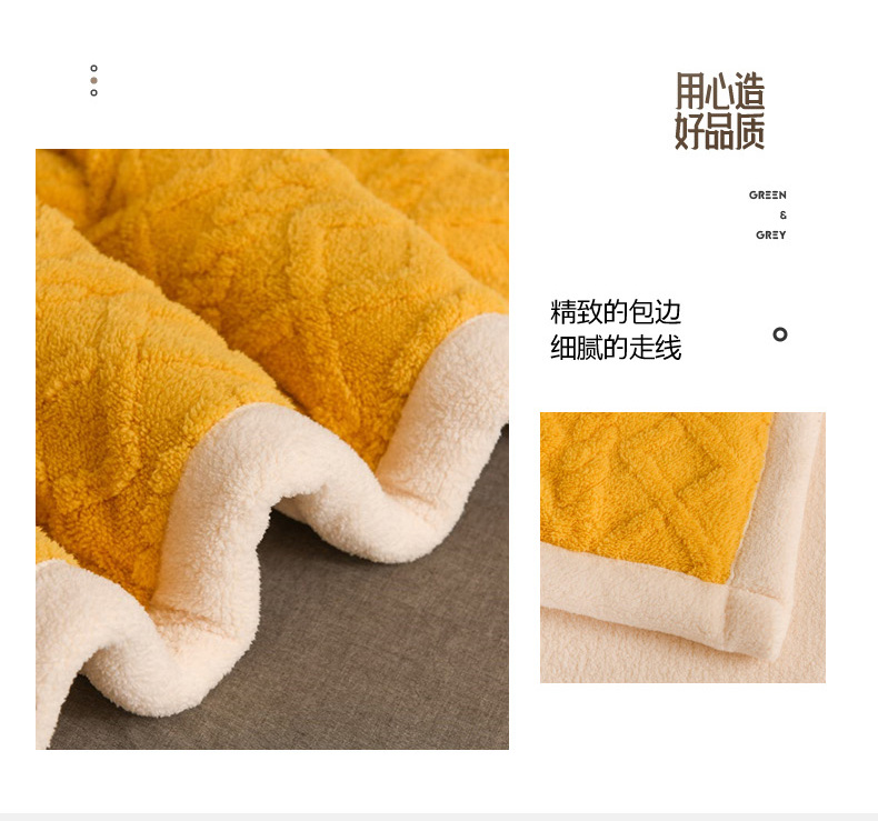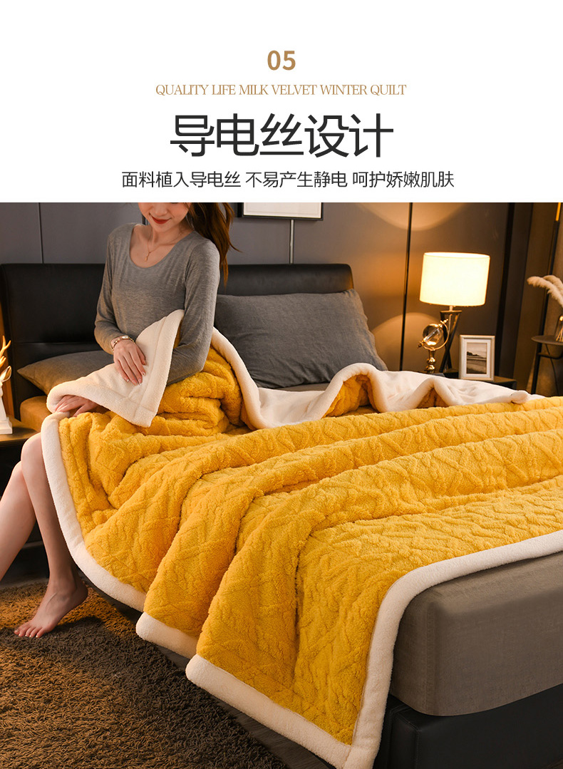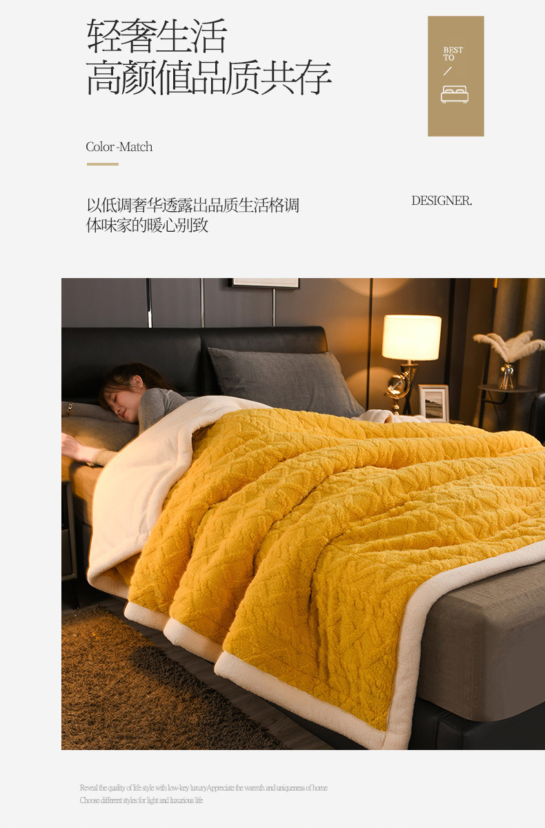 印季家纺 2025秋冬新款三层夹棉加厚-塔肤绒毛毯毯子多功能盖毯 柠檬黄