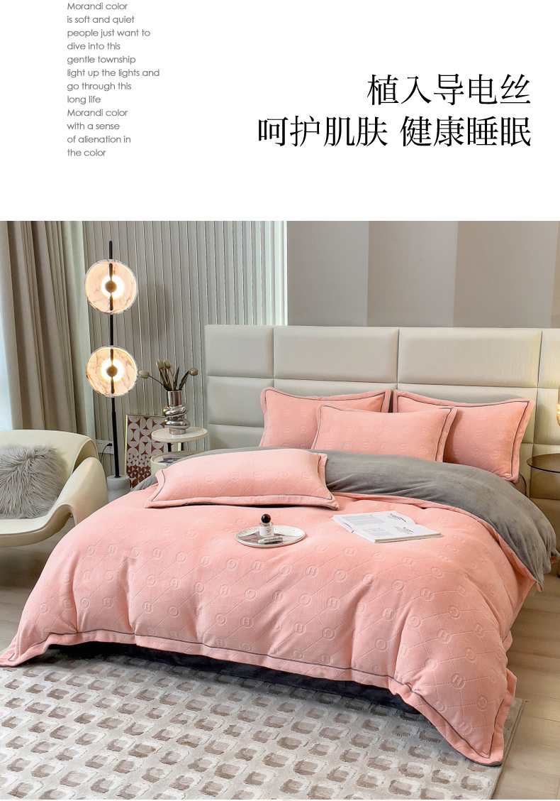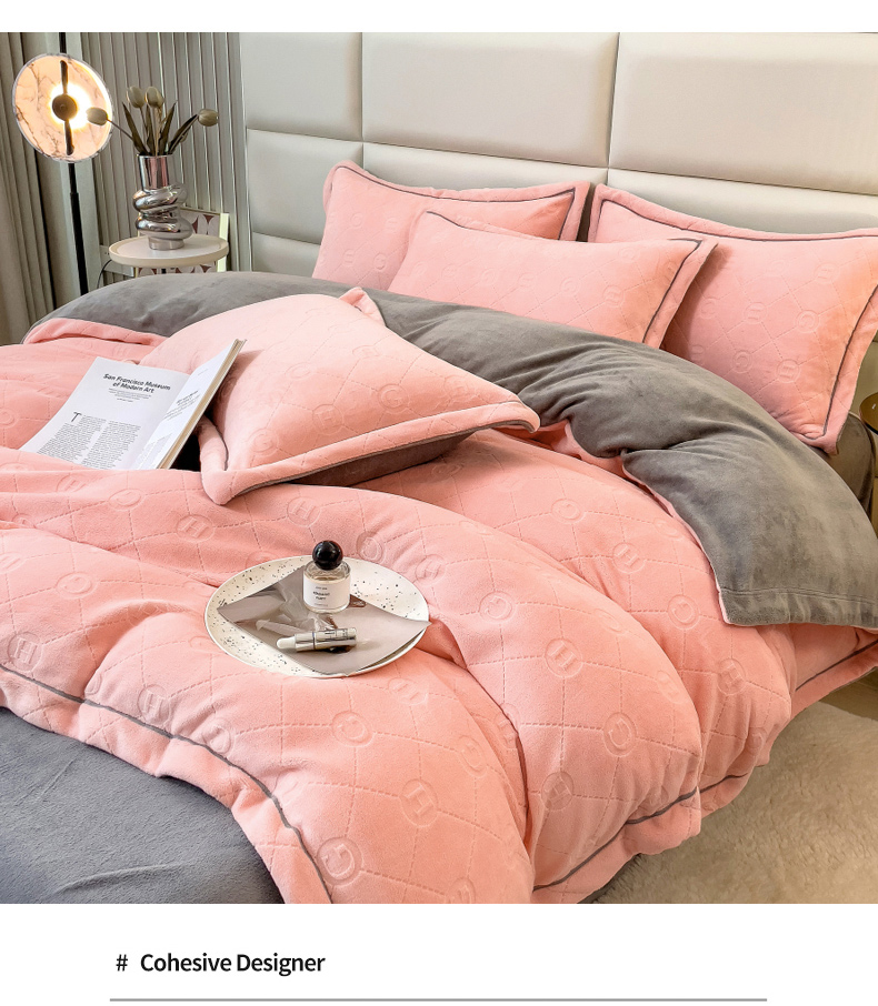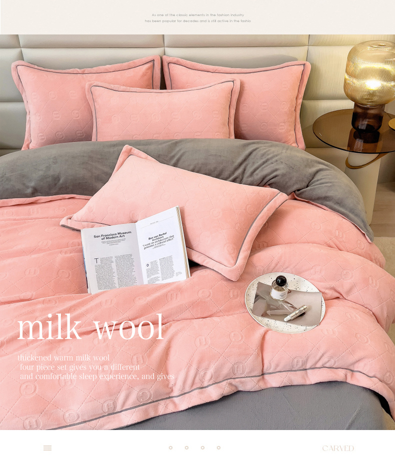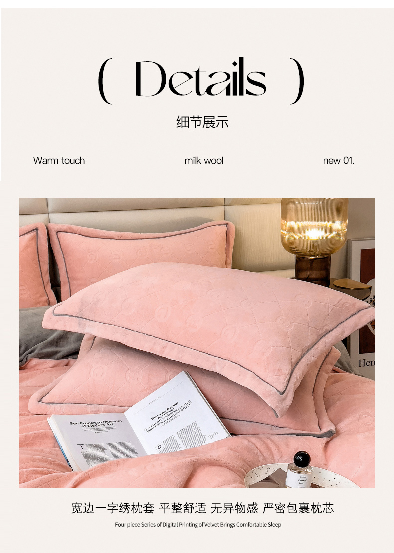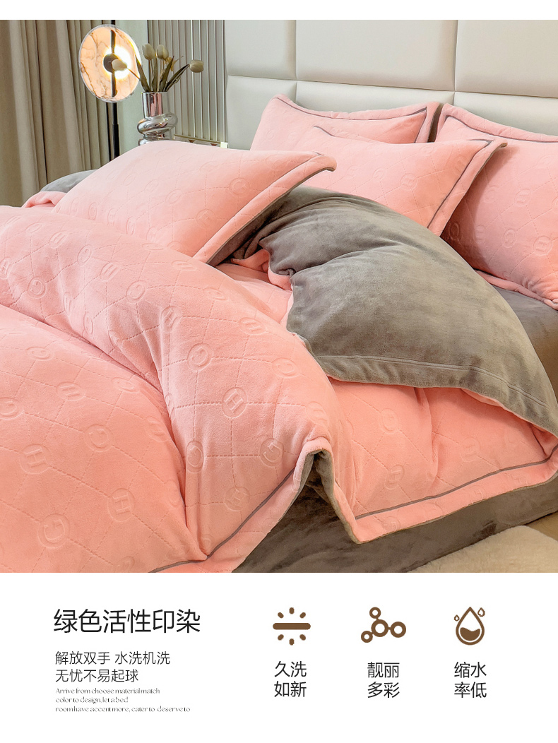 当前位置: 91家纺网 > 商品网购 > 床品套件 > 四件套 > 牛奶绒四件套 > 印季家纺 2025新款HG剪花一字绣牛奶绒四件套 嫩粉-马丁灰