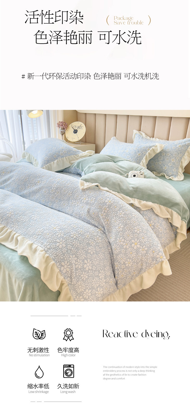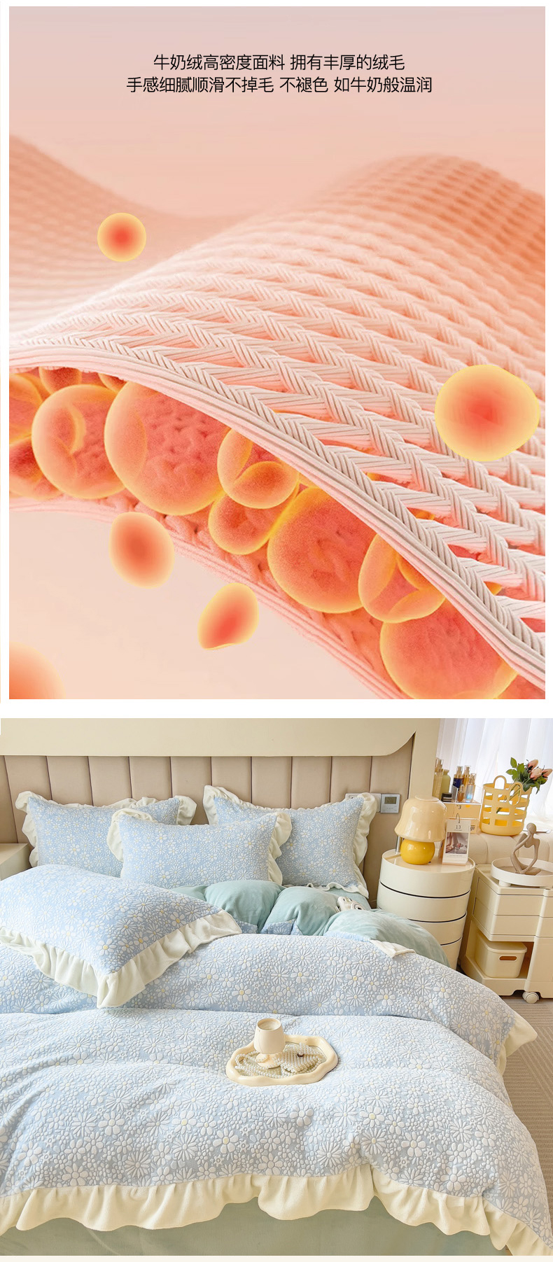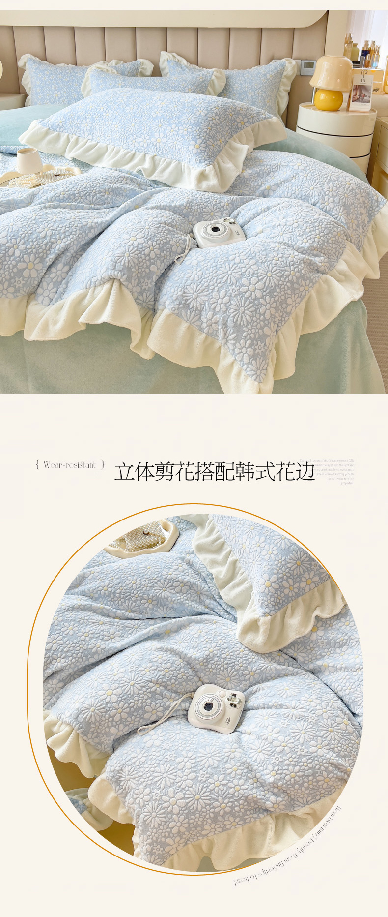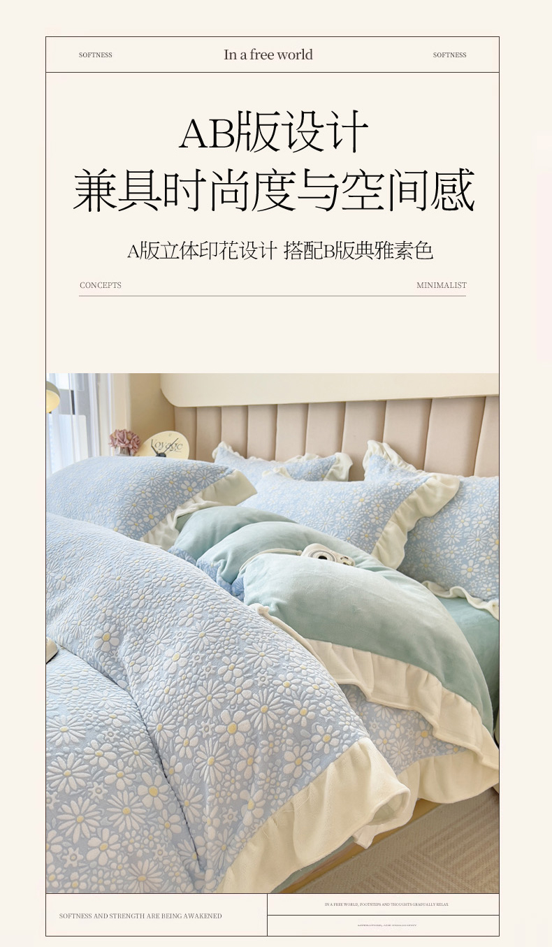 当前位置: 91家纺网 > 商品网购 > 床品套件 > 四件套 > 牛奶绒四件套 > 印季家纺 2025新款花边款立体剪花牛奶绒四件套 天蓝
