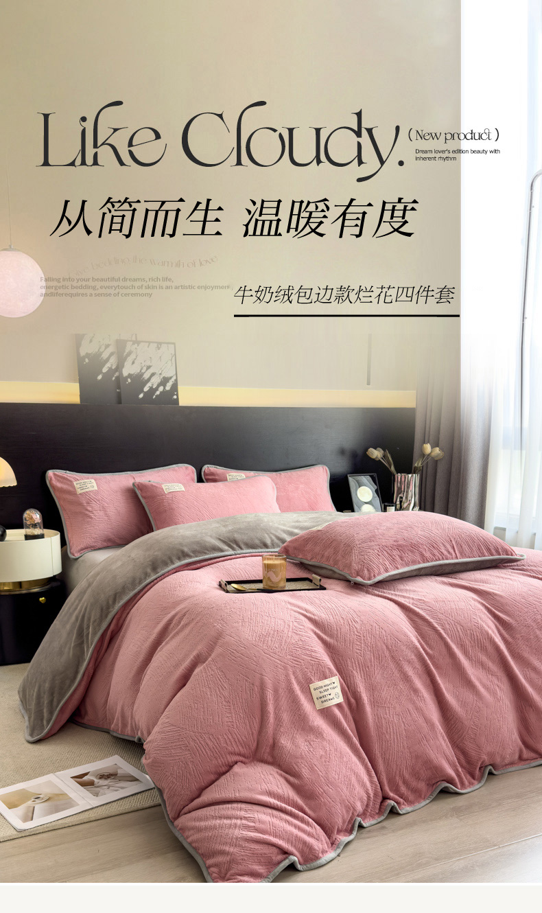 (总)印季家纺 2025新款牛奶绒包边款烂花四件套